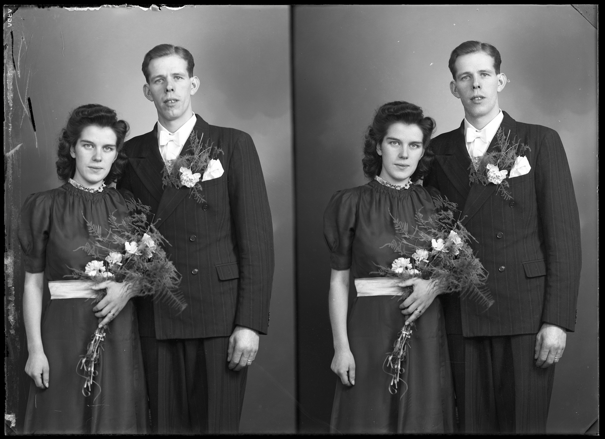 Grupporträtt, brudpar. Karl-Gustaf Lindgren, Eldslund, Kolbäck.