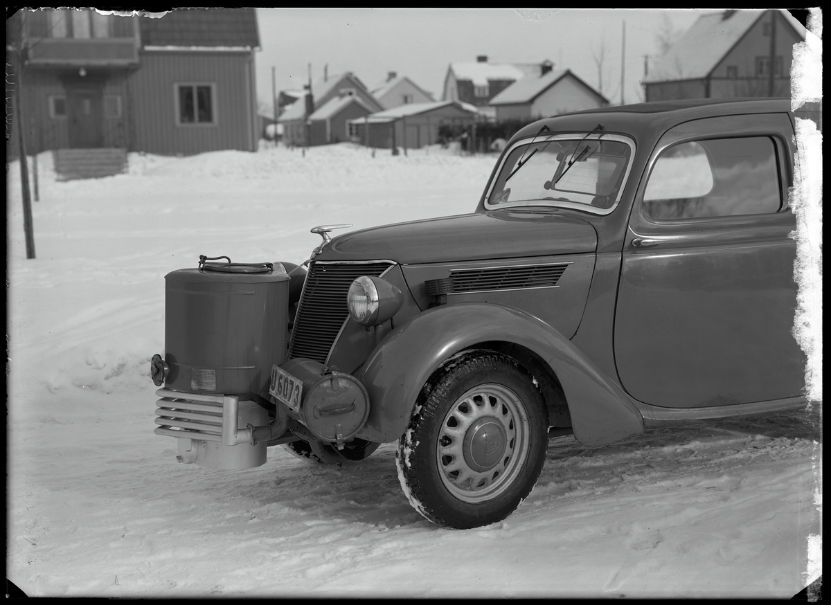 Titel: Bil med gengasaggregat. Gunnar Karlsson, Risbro, Munktorp. Ur Gustaf Åhmans samling.