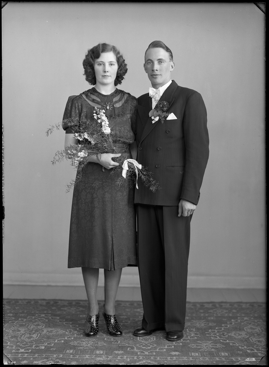 Brudporträtt. Brudpar, Anton Jönsson, Box 82, Kolbäck.