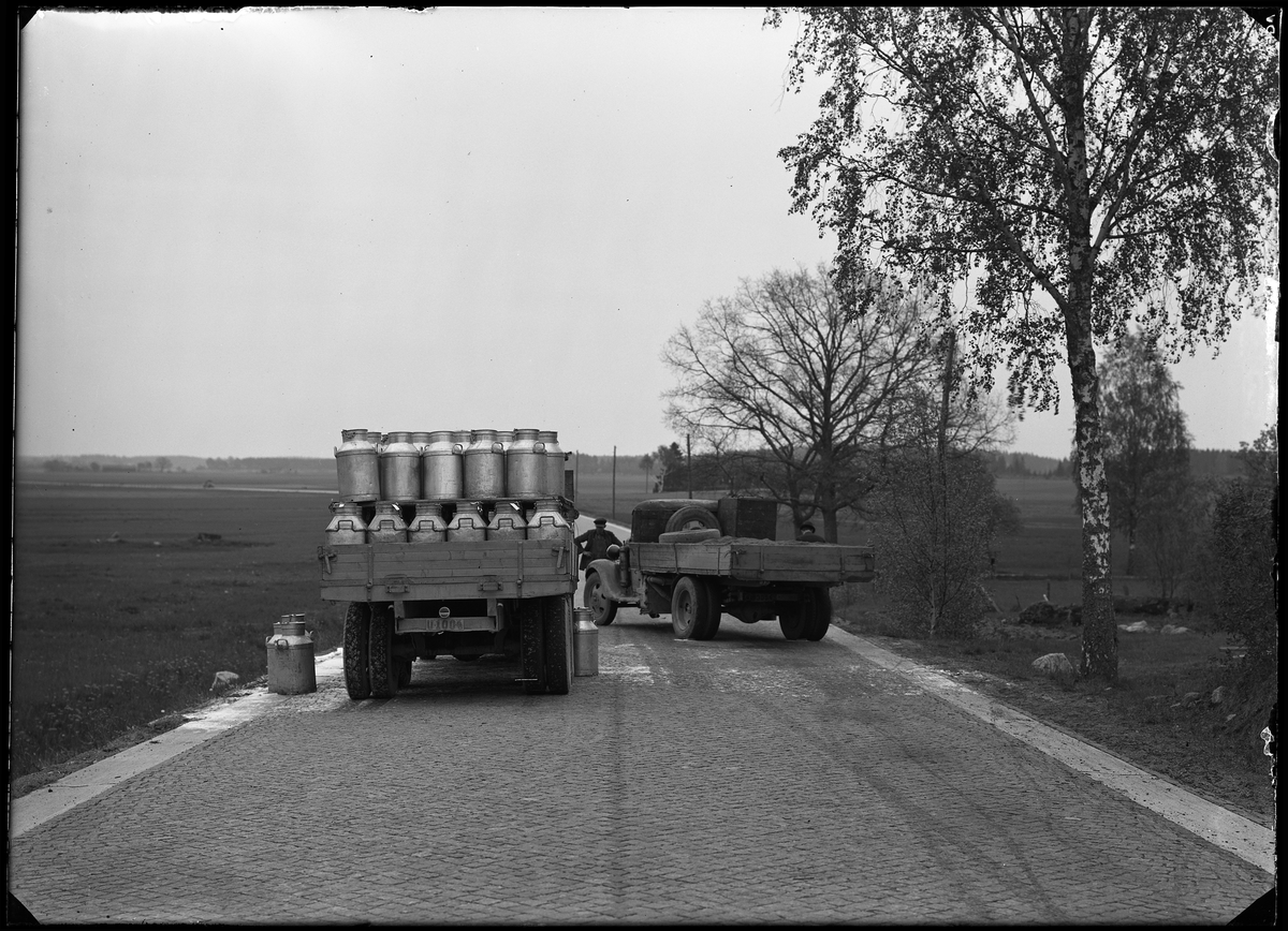 Lastbilar på väg. Landsfiskal Jansson, Kolbäck, vid fyrbarken, Strömsholm.