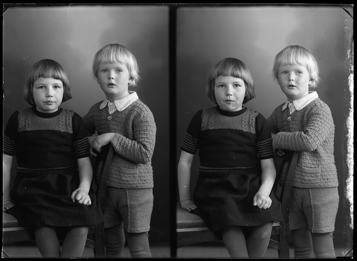 Grupporträtt, två barn. Hans Valkvist, Herrevad.