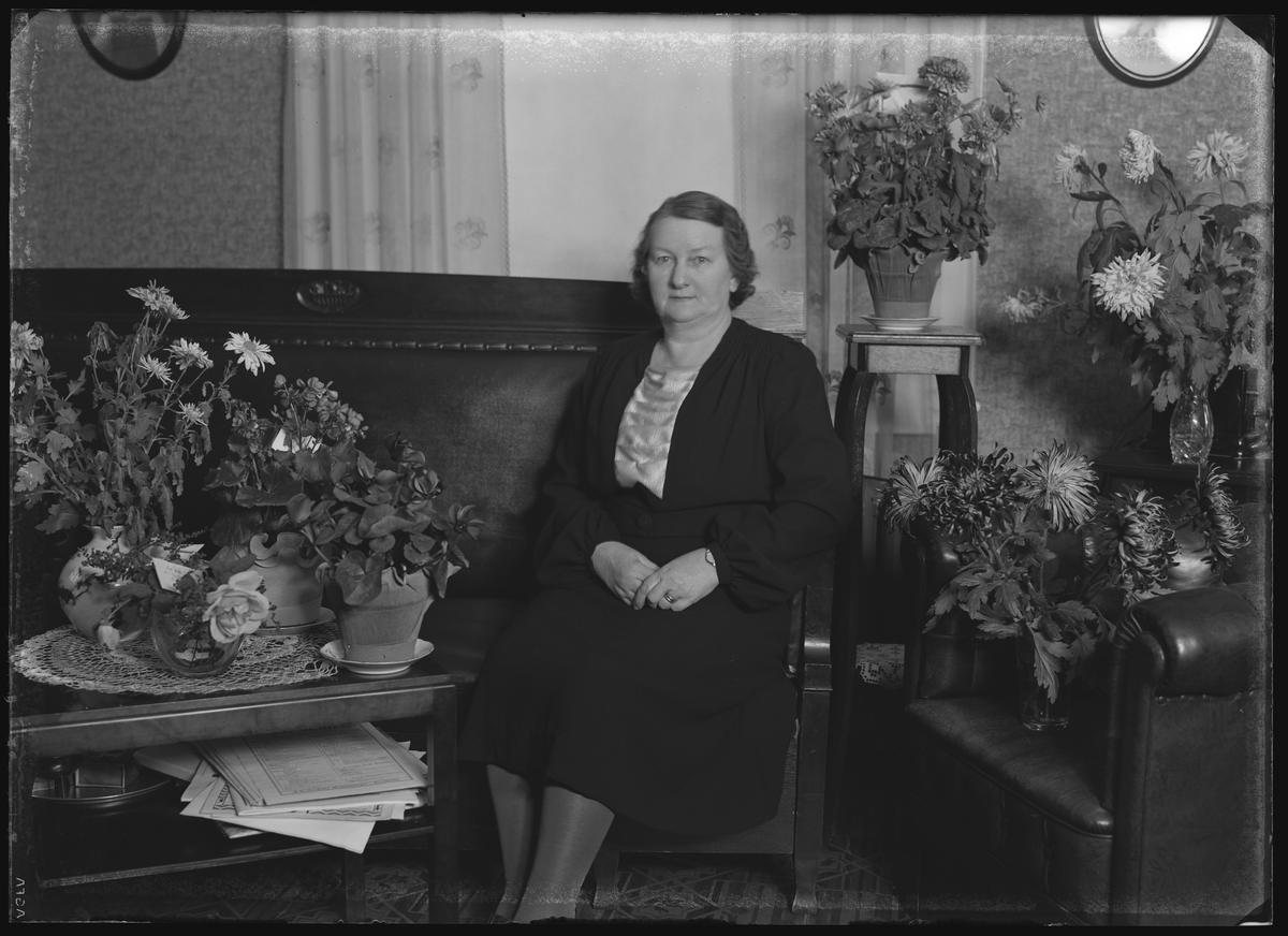 Kvinnoporträtt, 50-års foto. Fru Larsson. Ur Gustaf Åhmans samling.