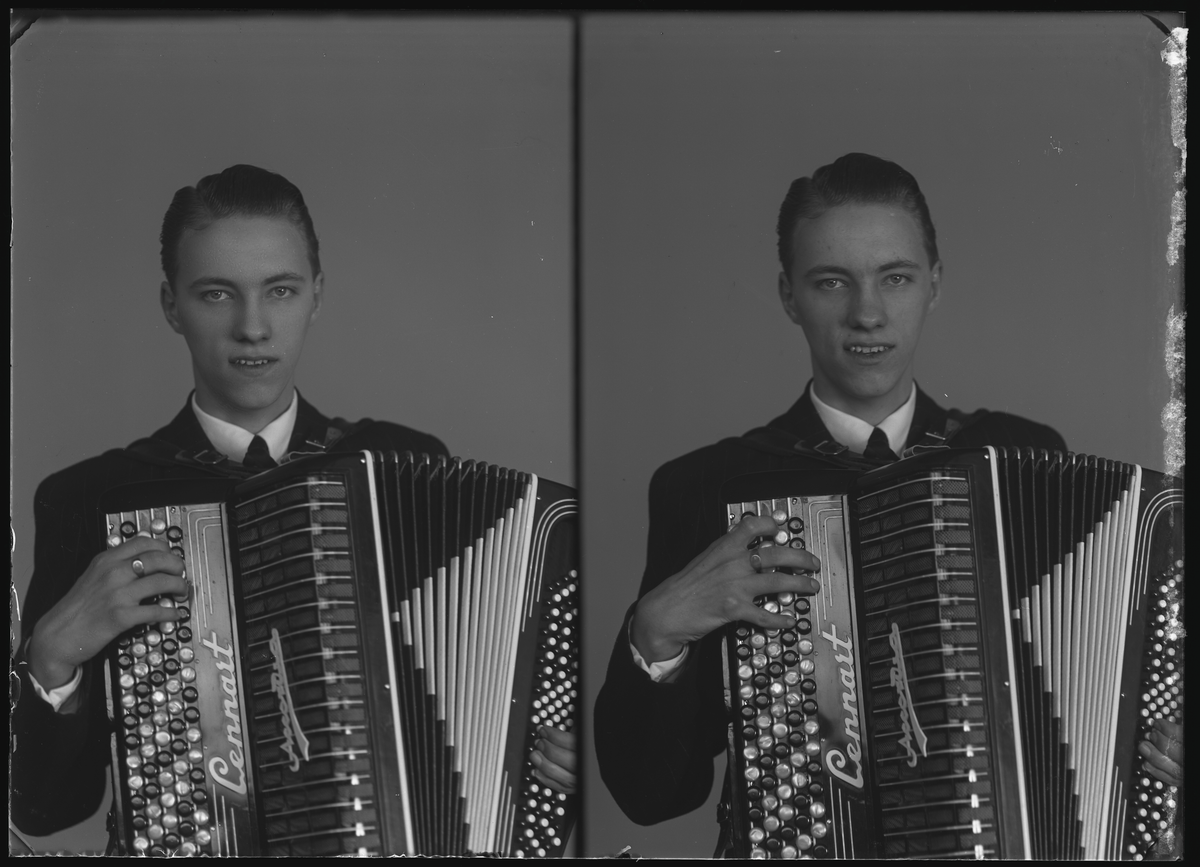 Man med dragspel. Lennart Vennerdahl. Ur Gustaf Åhmans samling.