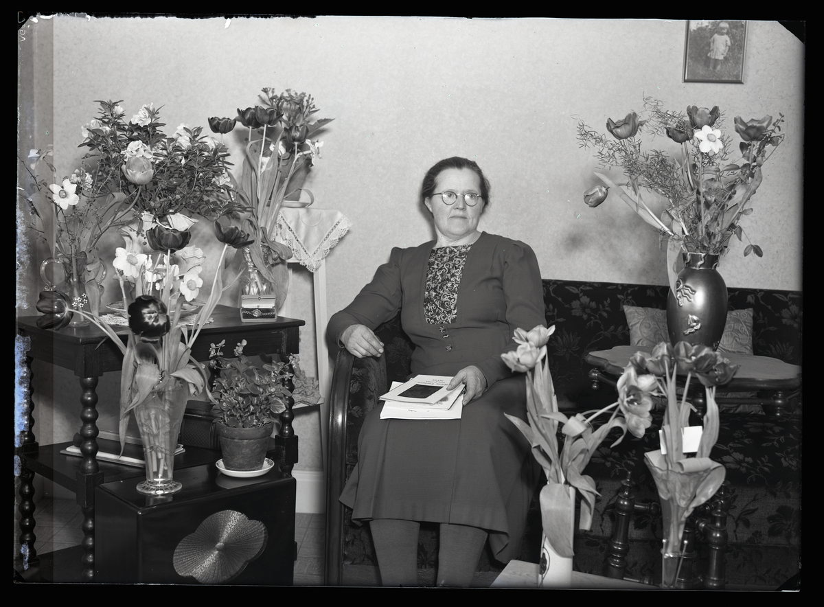 Kvinnoporträtt, 50-års foto, Fru Maja Karlsson, Strandvägen.