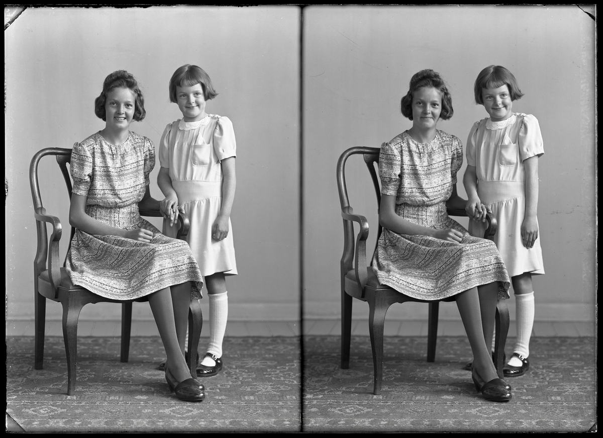 Grupporträtt, två barn. Frida Björk, Vänsta, Kolbäck.