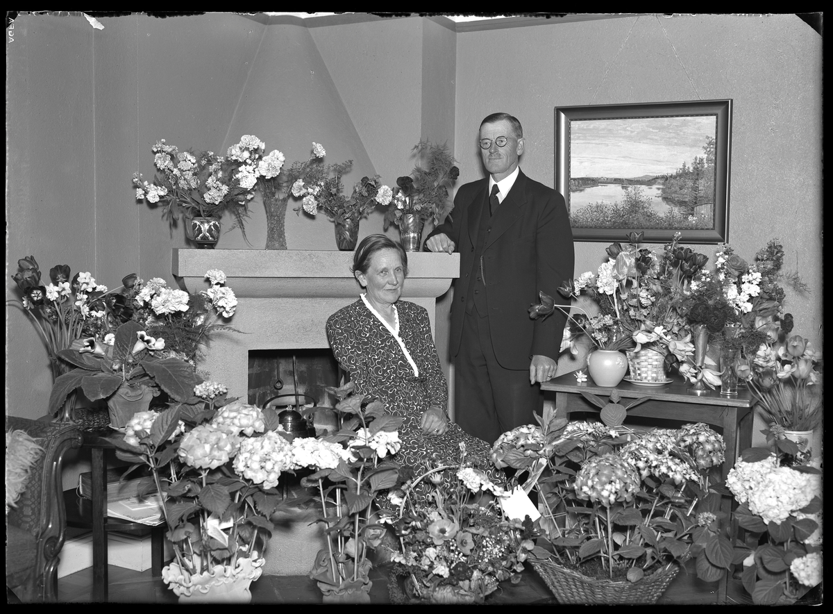 Grupporträtt, två personer. Banmästare Andersson, Kolbäck.