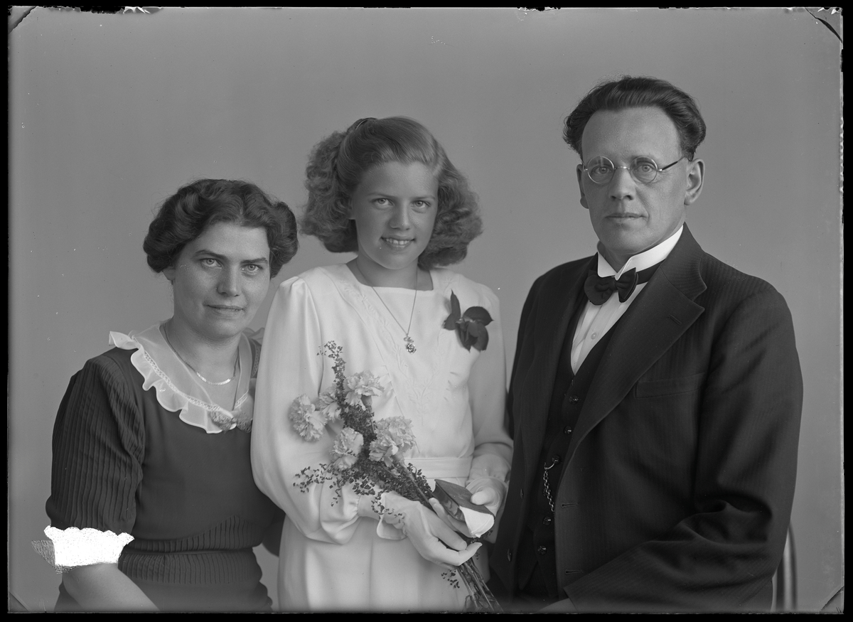 Grupporträtt, tre personer. Redaktör Hilding Severin, Norrmälarstrand 94, 3tr, Stockholm.