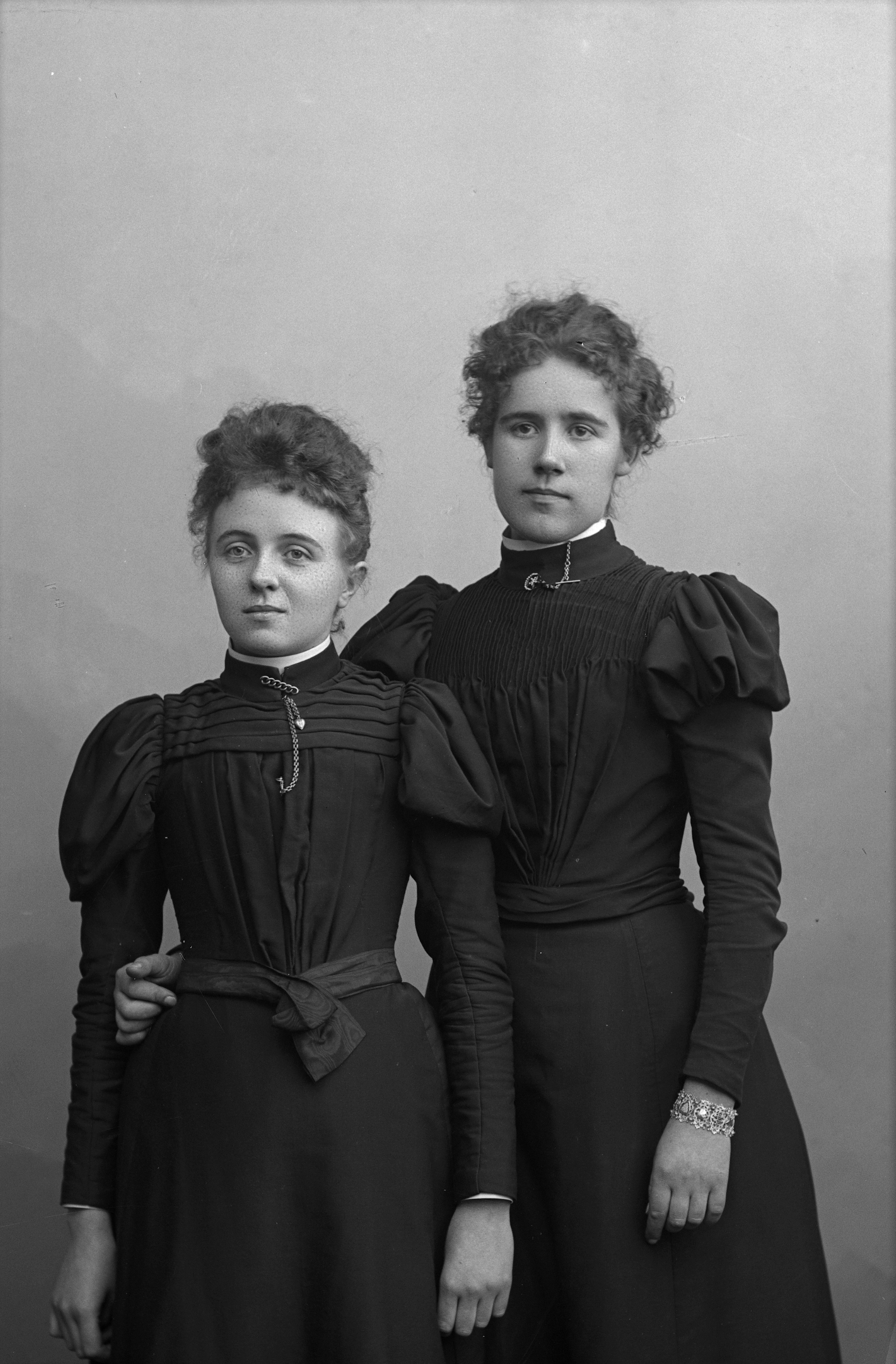 Beskrivning: Porträtt i helfigur av fröken Eklund med okänd kvinna.