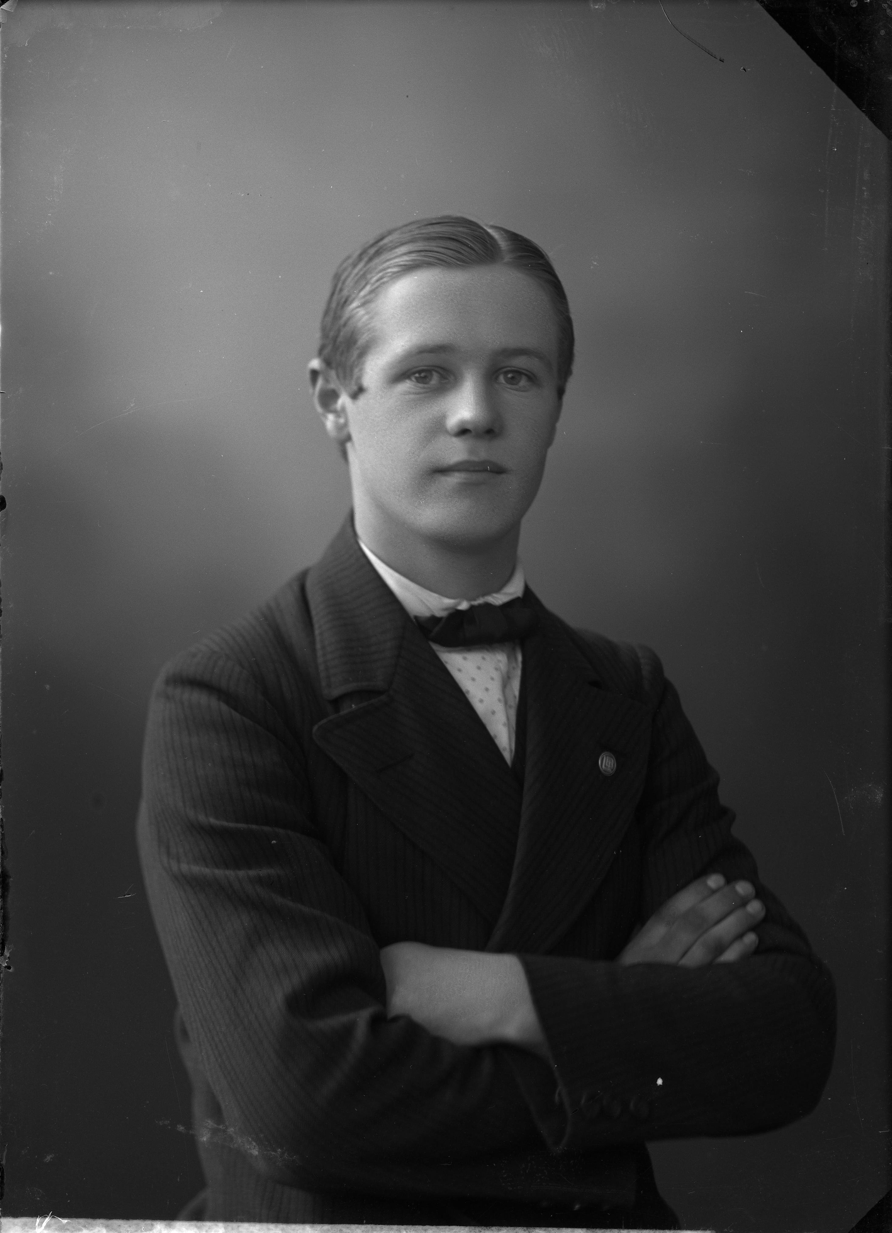 Beskrivning: Porträtt i halvfigur av Axel Larsson.