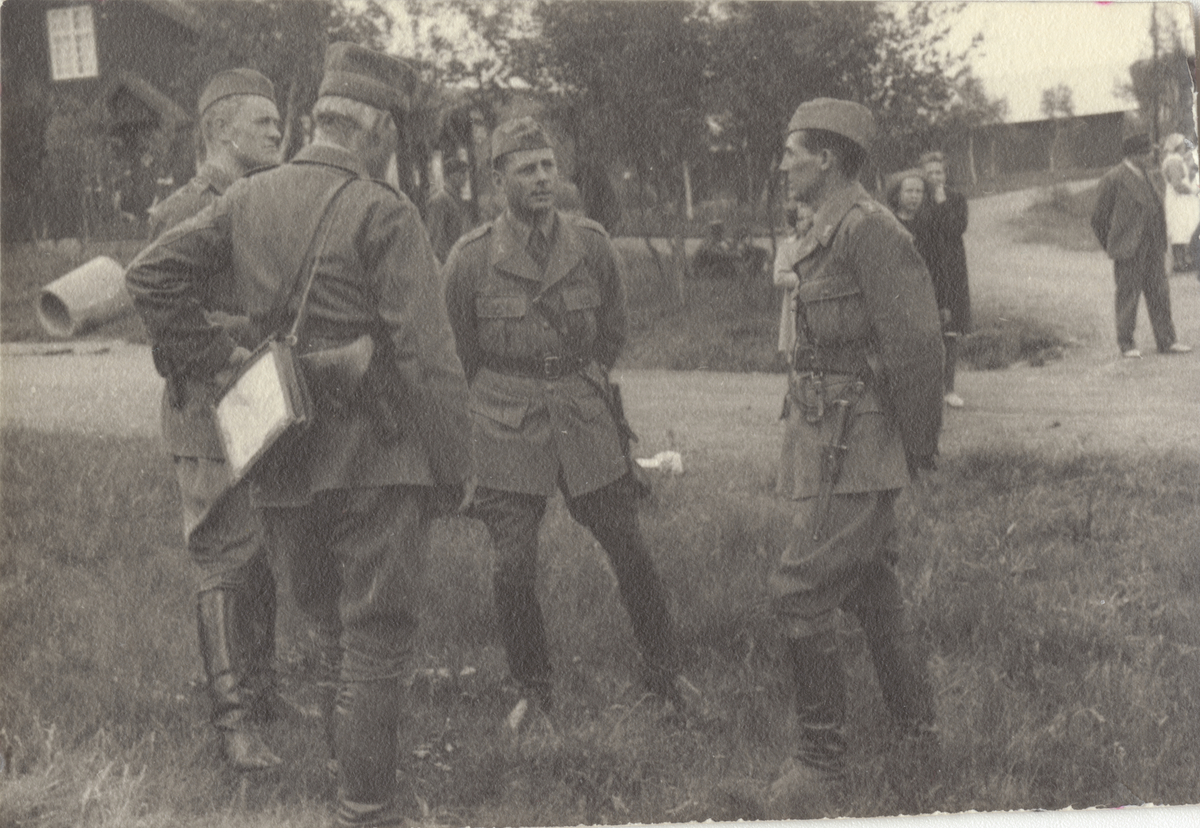 Titel: Officerare i samtal. Foto ur anonym serie från beredskapen i Norrland.