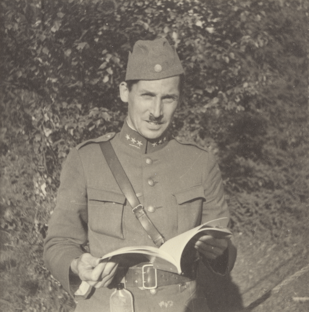 Titel: Kapten läser i ett häfte. Foto ur anonym serie från beredskapen i Norrland.