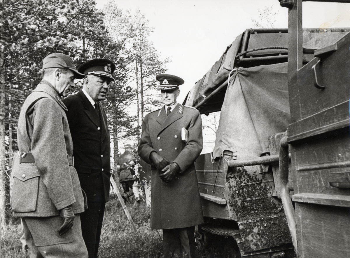 Titel: Högre befäl och Överbefälhavare vid en bandtraktor.