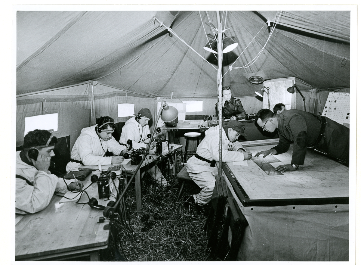 Titel: Sambandscentral med fälttelefon m/1937 i tält.