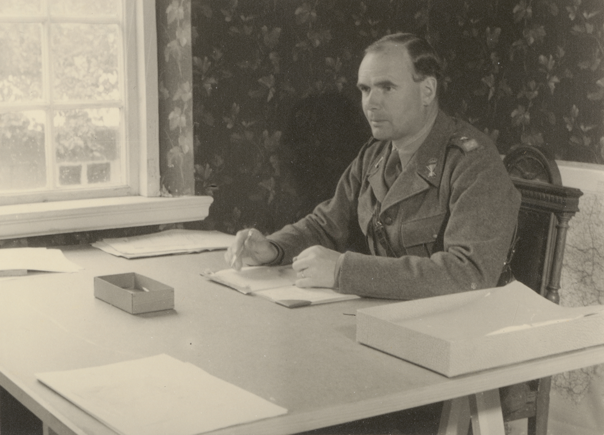 Man ur kavalleriet vid skrivbord, expeditionstjänst, uniform m/1939.