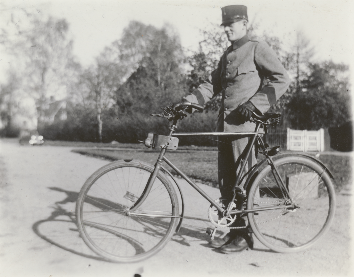 Titel: Sjukvårdare med cykel. Uniform m/1910.