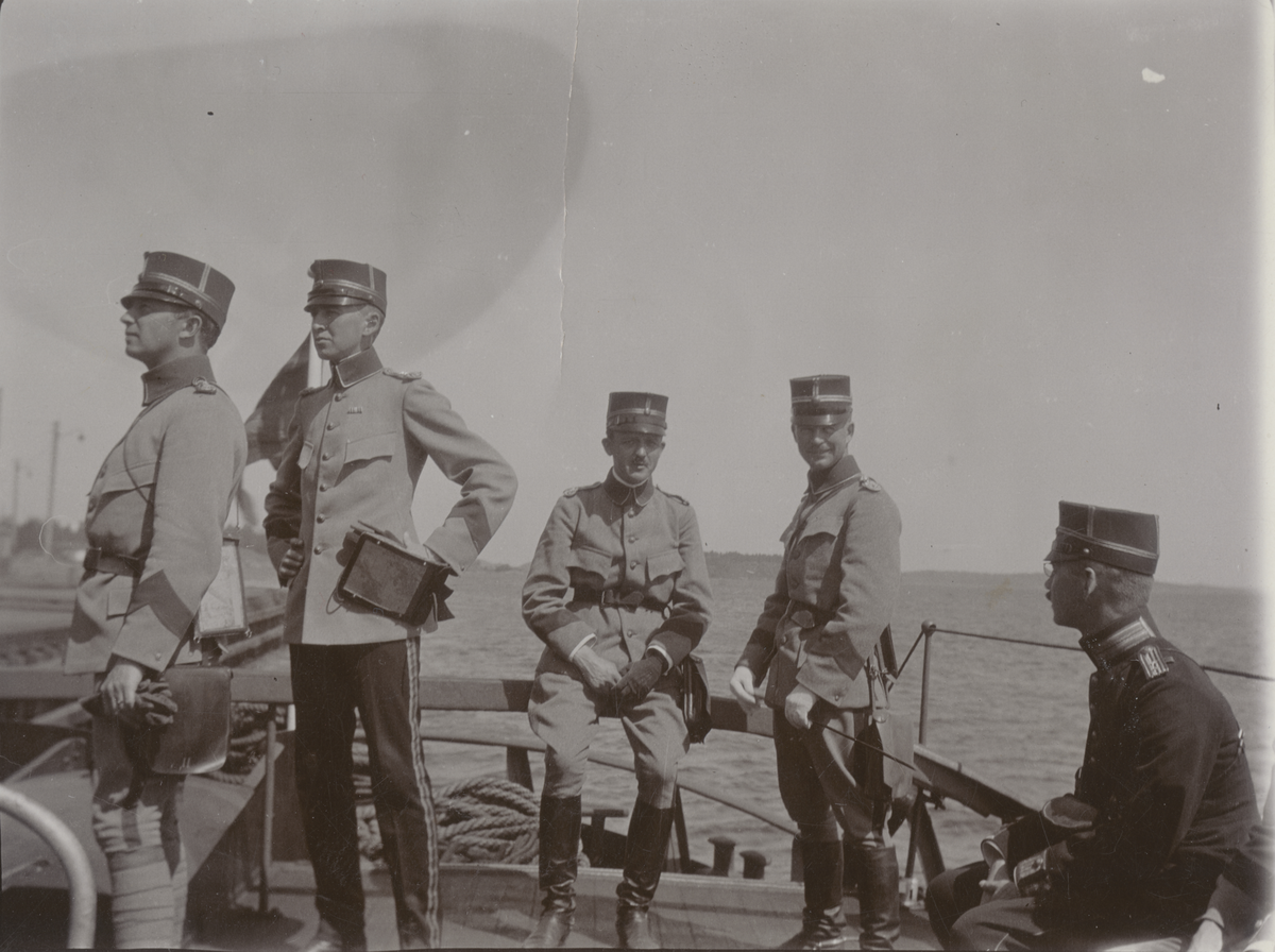 Titel: Fem officerare i aktern på ett fartyg.