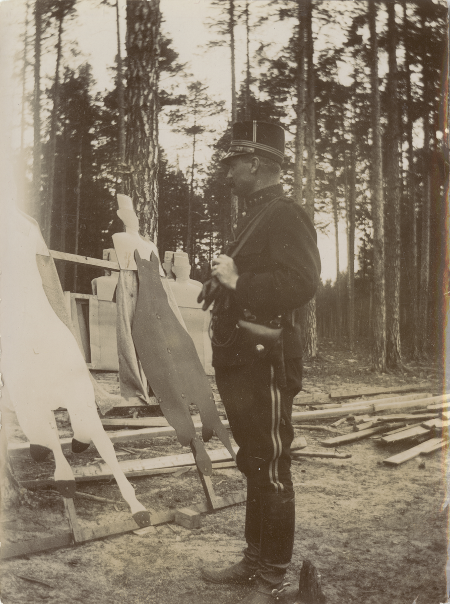 Titel: Officer betraktar måltavlor i form av kavallerister.