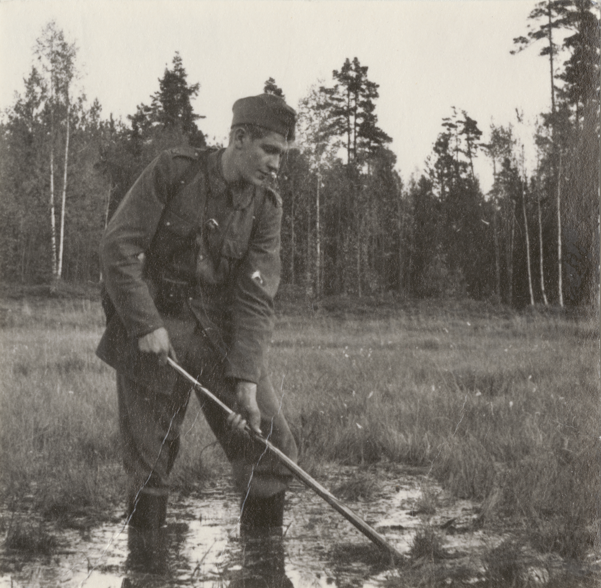 Titel: Soldat i träskmark. Uniform m/1939.