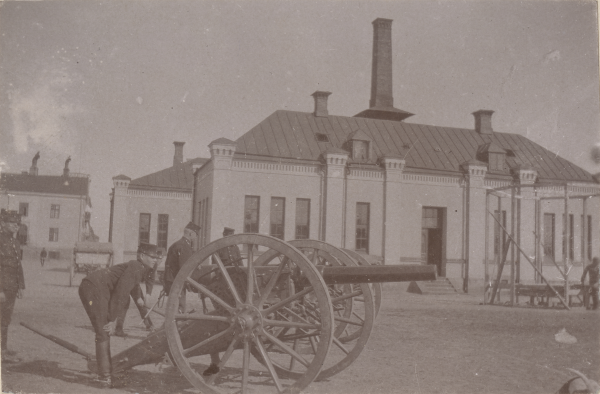 Två 7,5 cm kanoner m/1902 på gård.