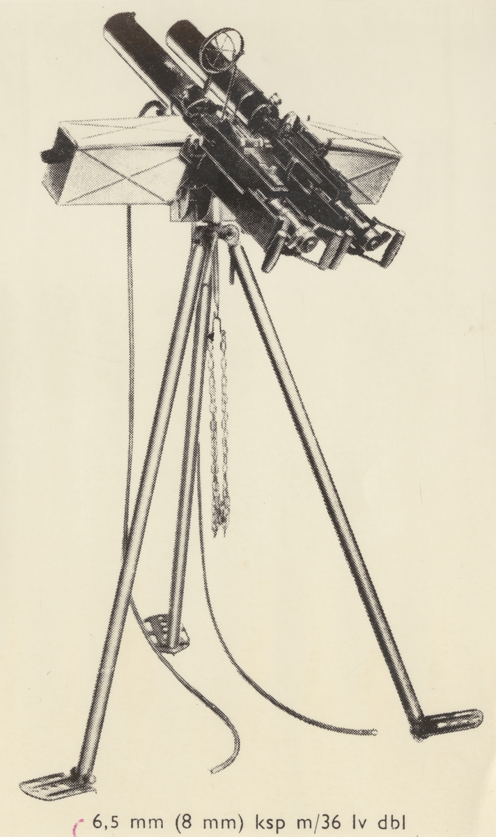 Titel: Dubbel 8 mm luftvärnskulspruta m/1936 på tripodlavett.