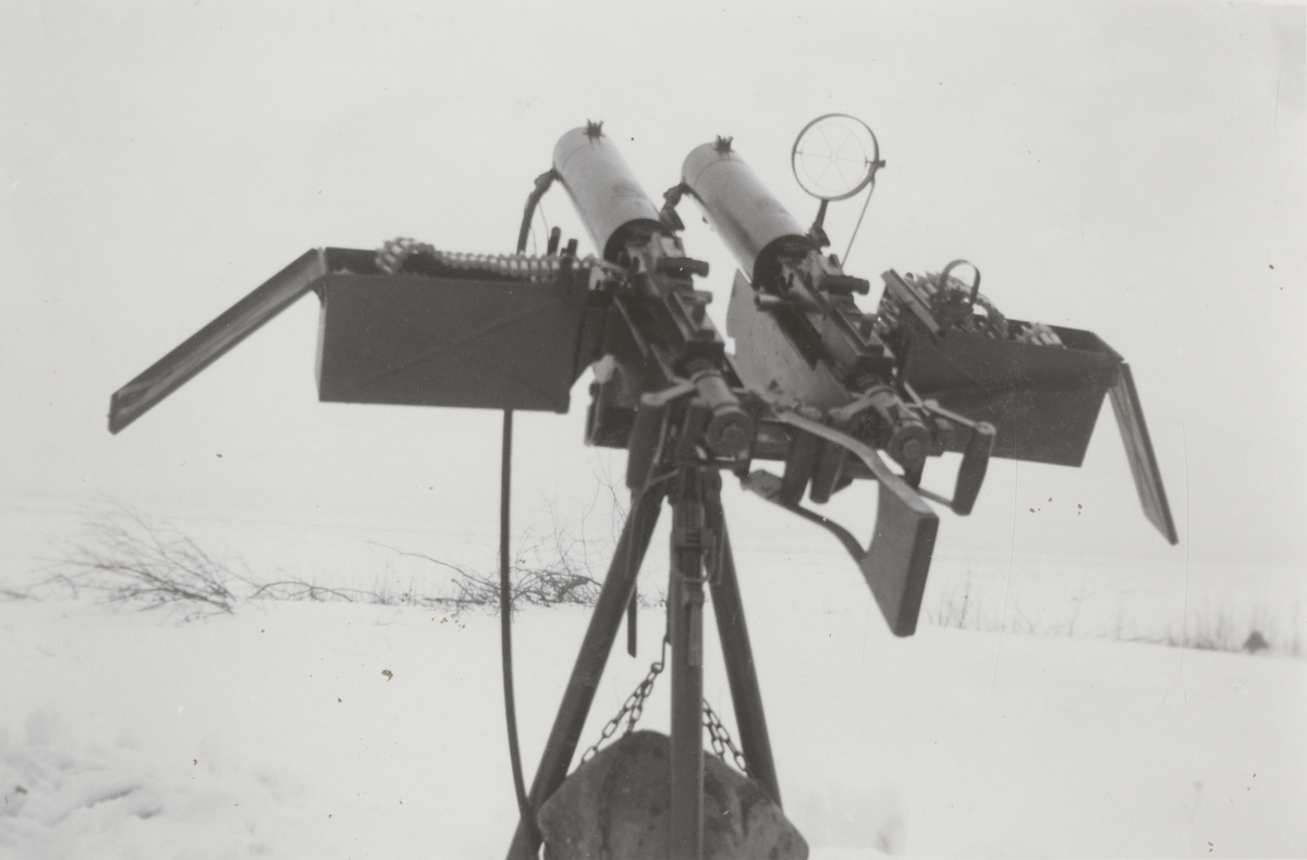 Titel: Dubbel 8 mm luftvärnskulspruta m/1936 på tripodlavett.