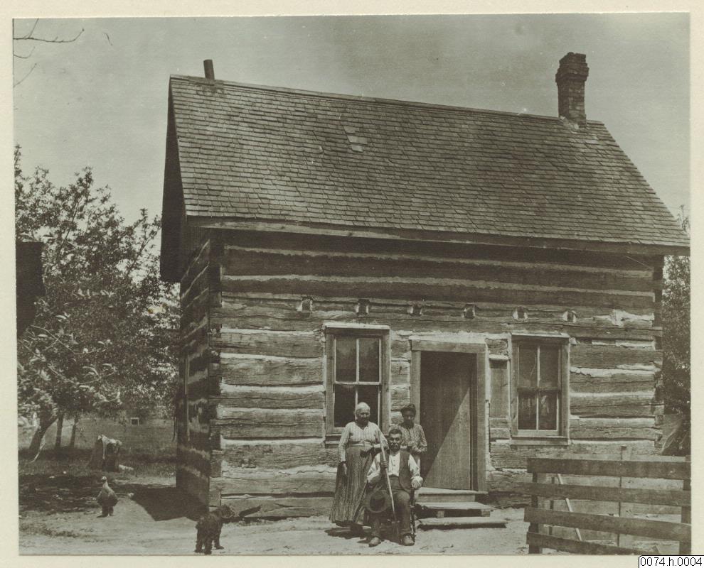 Modern irokesfamilj vid sin stuga. (katalogkort)