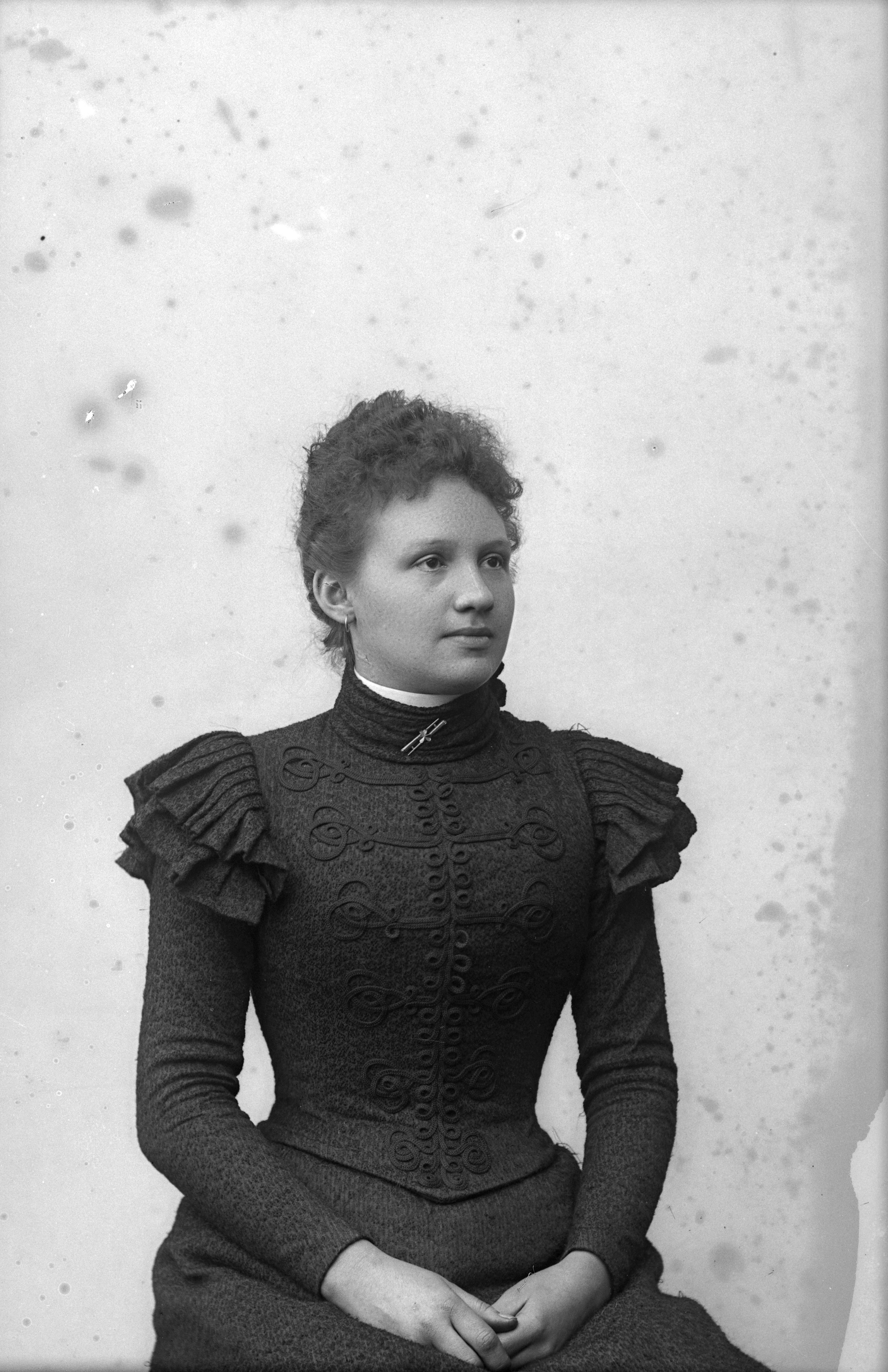 Beskrivning: Porträtt i halvfigur av Wilhelmina Andersson.