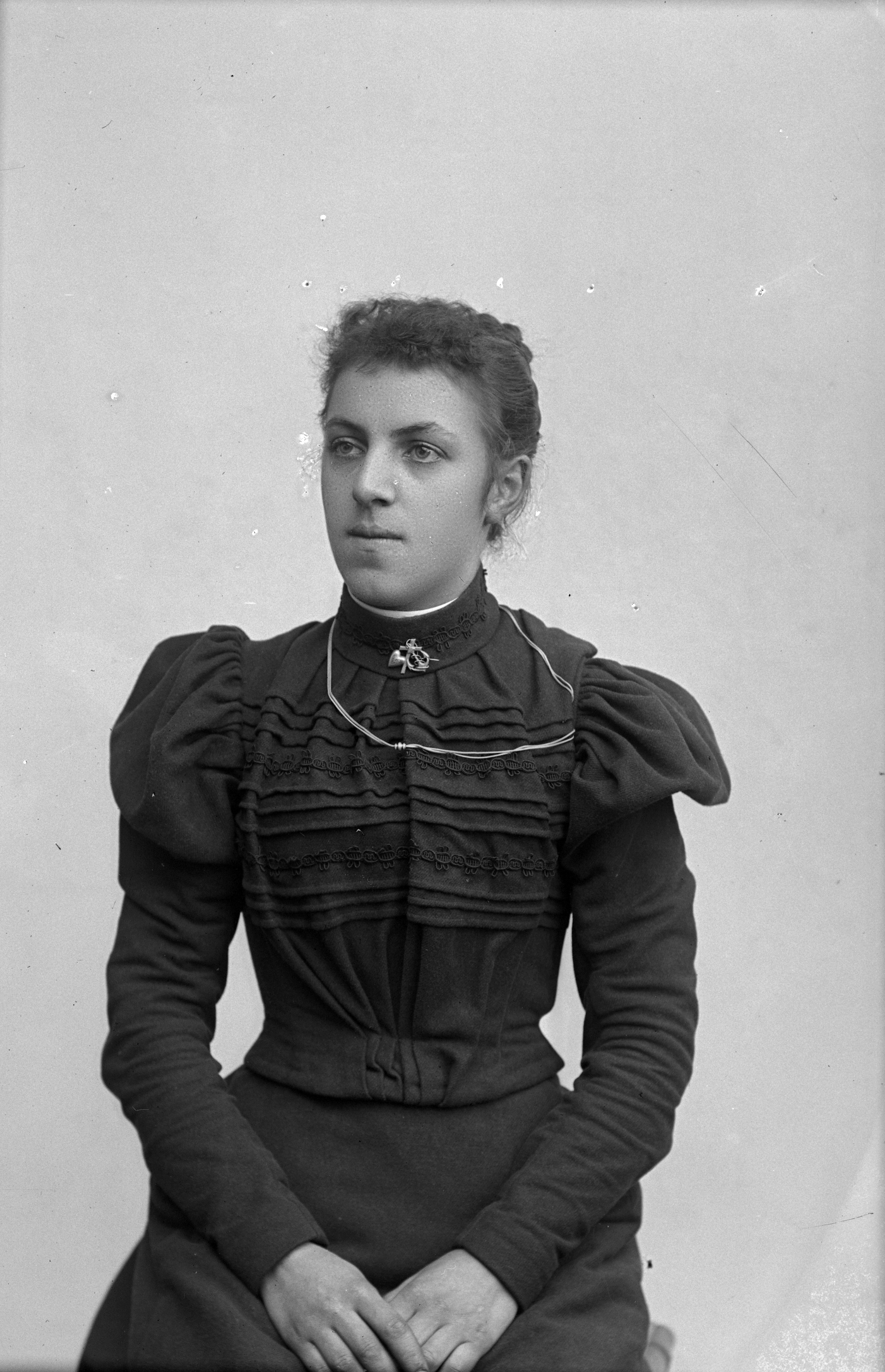 Beskrivning: Porträtt i halvfigur av Johanna Fan.