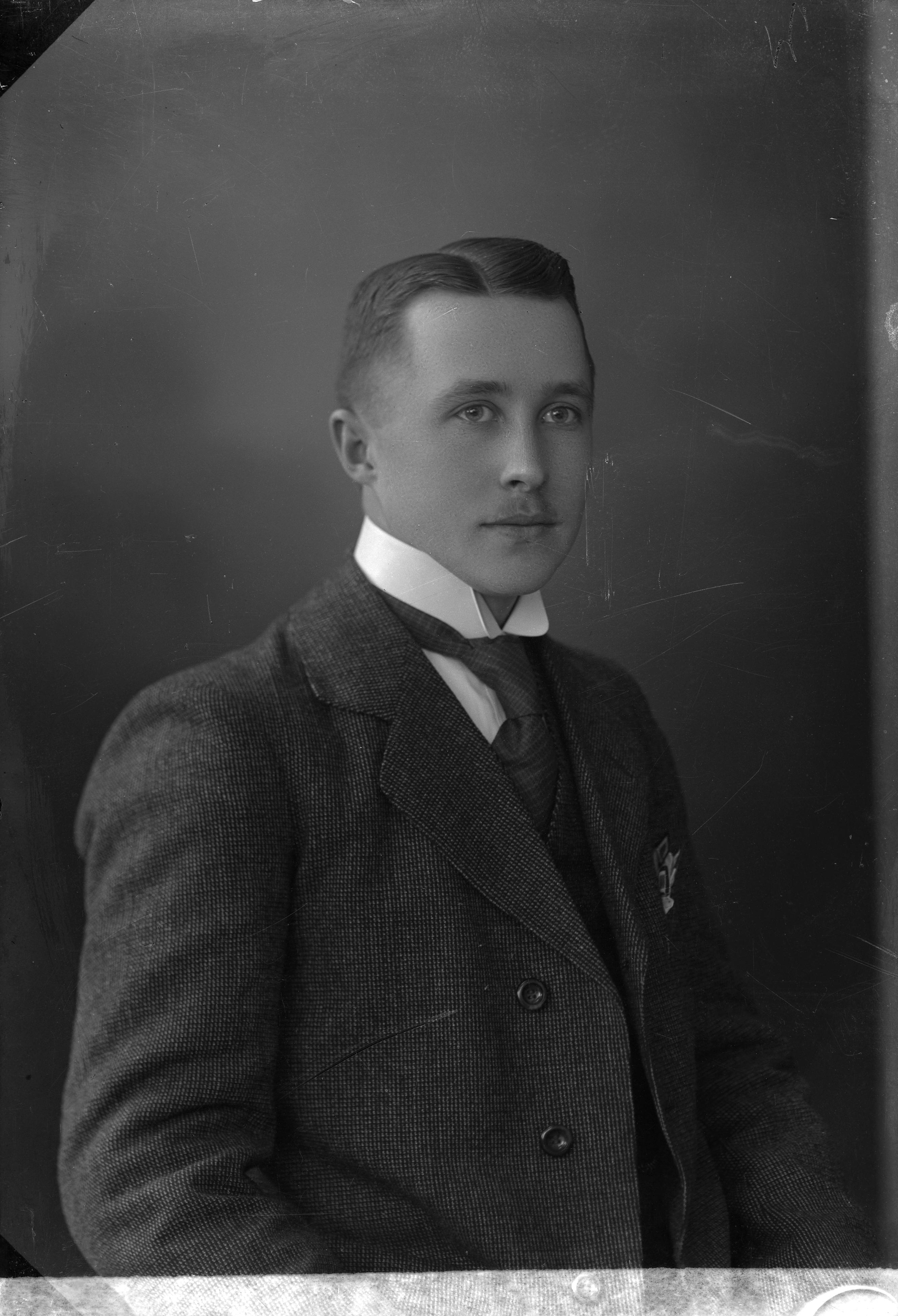 Beskrivning: Porträtt i halvfigur av Oscar Andersson.