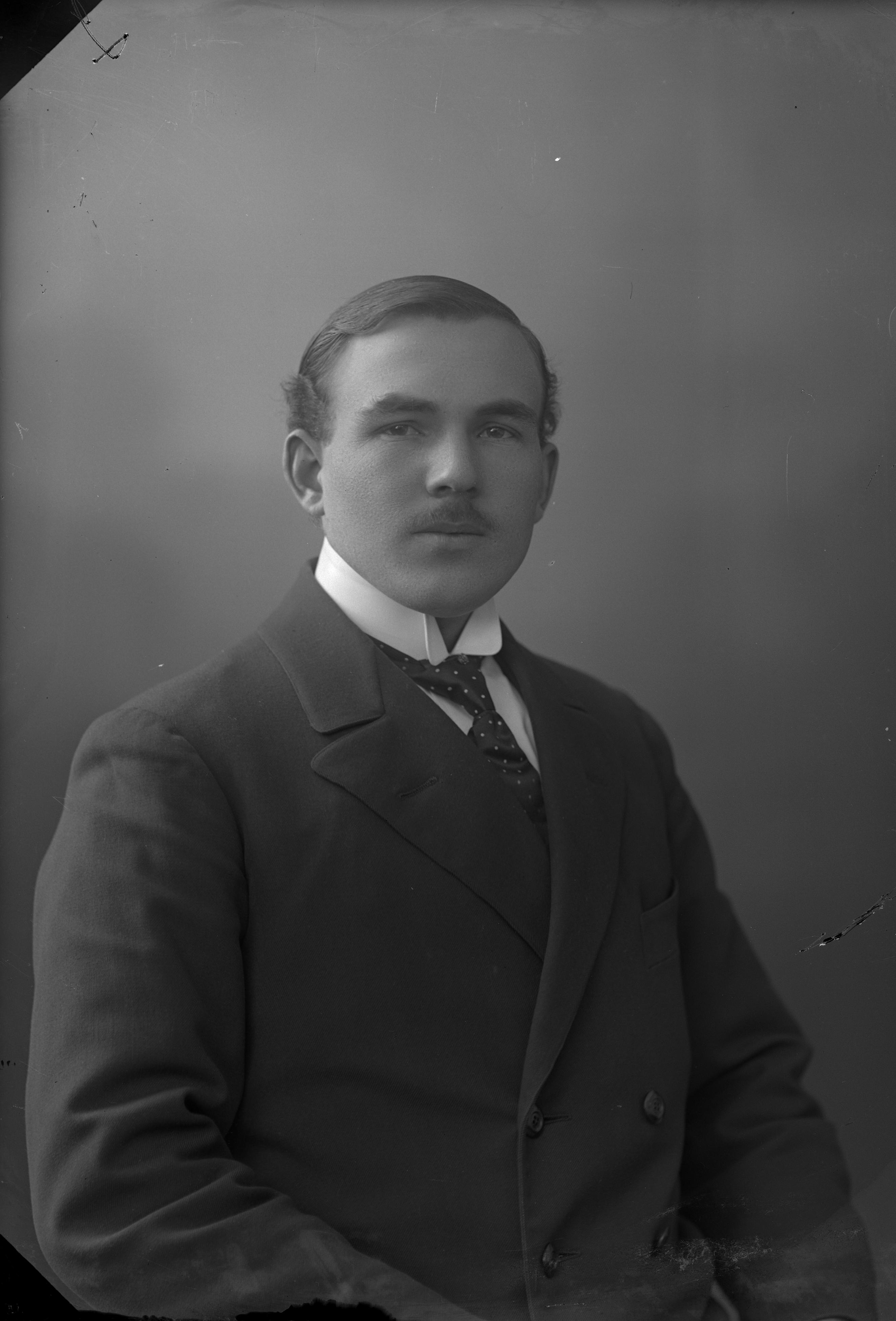 Beskrivning: Porträtt i halvfigur av Sture Lindkvist.