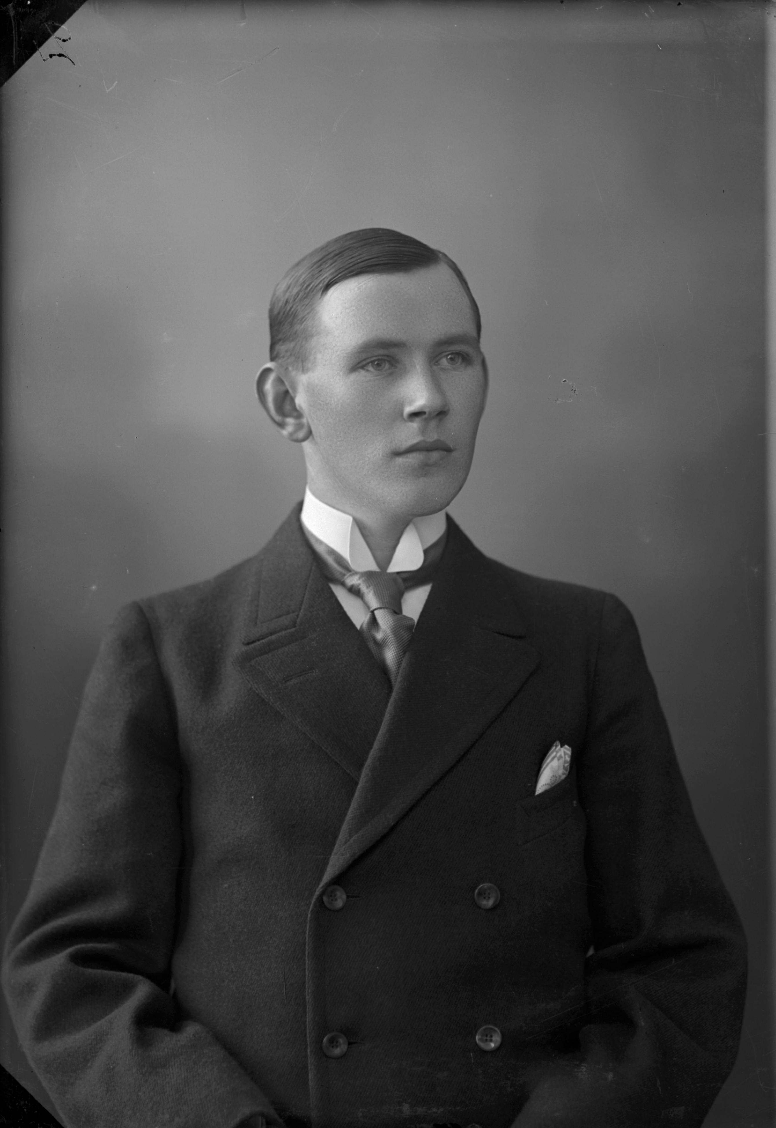 Beskrivning: Porträtt i halvfigur av Herman Jeppsson.