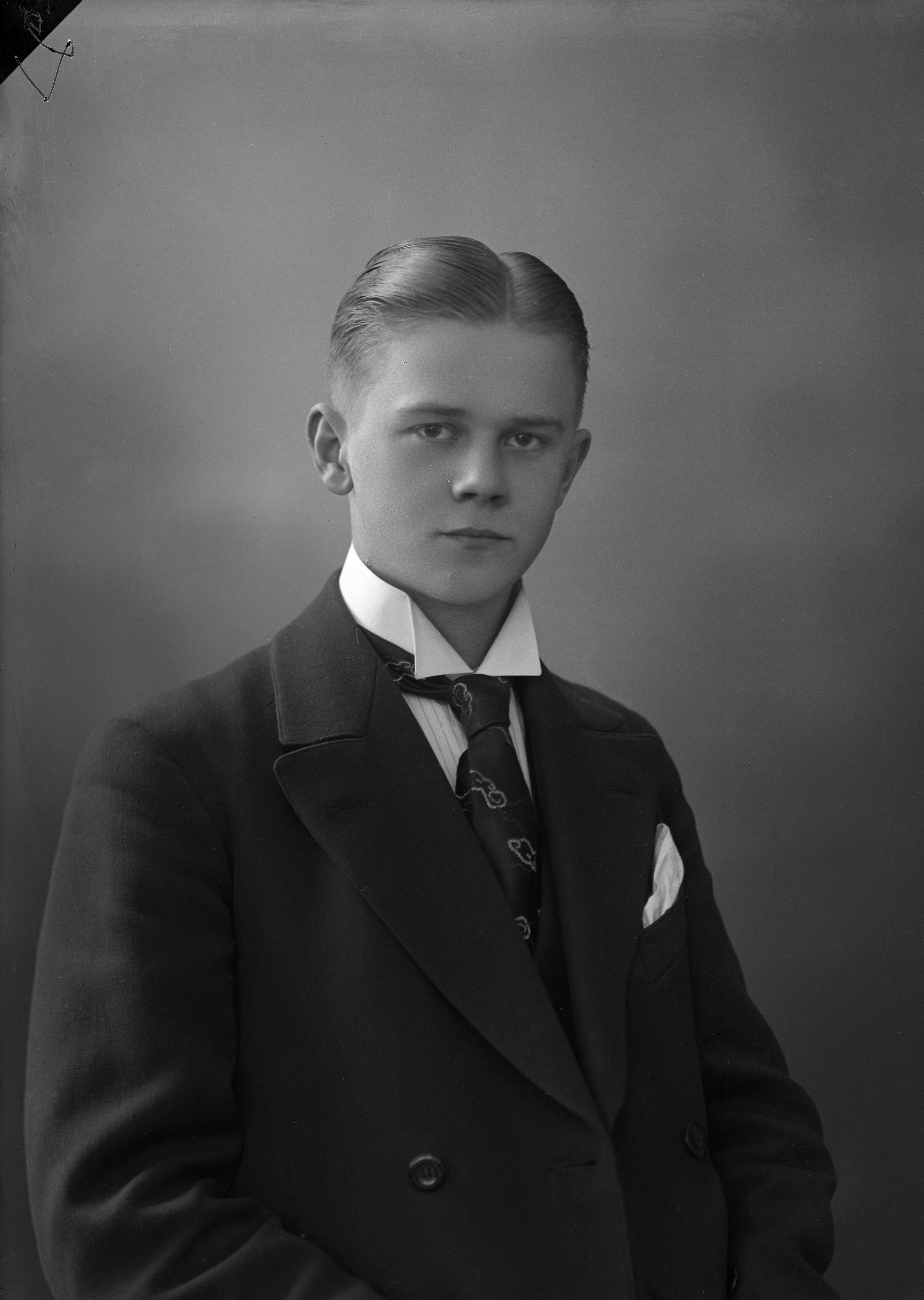 Beskrivning: Porträtt i halvfigur av Gösta Thorin.