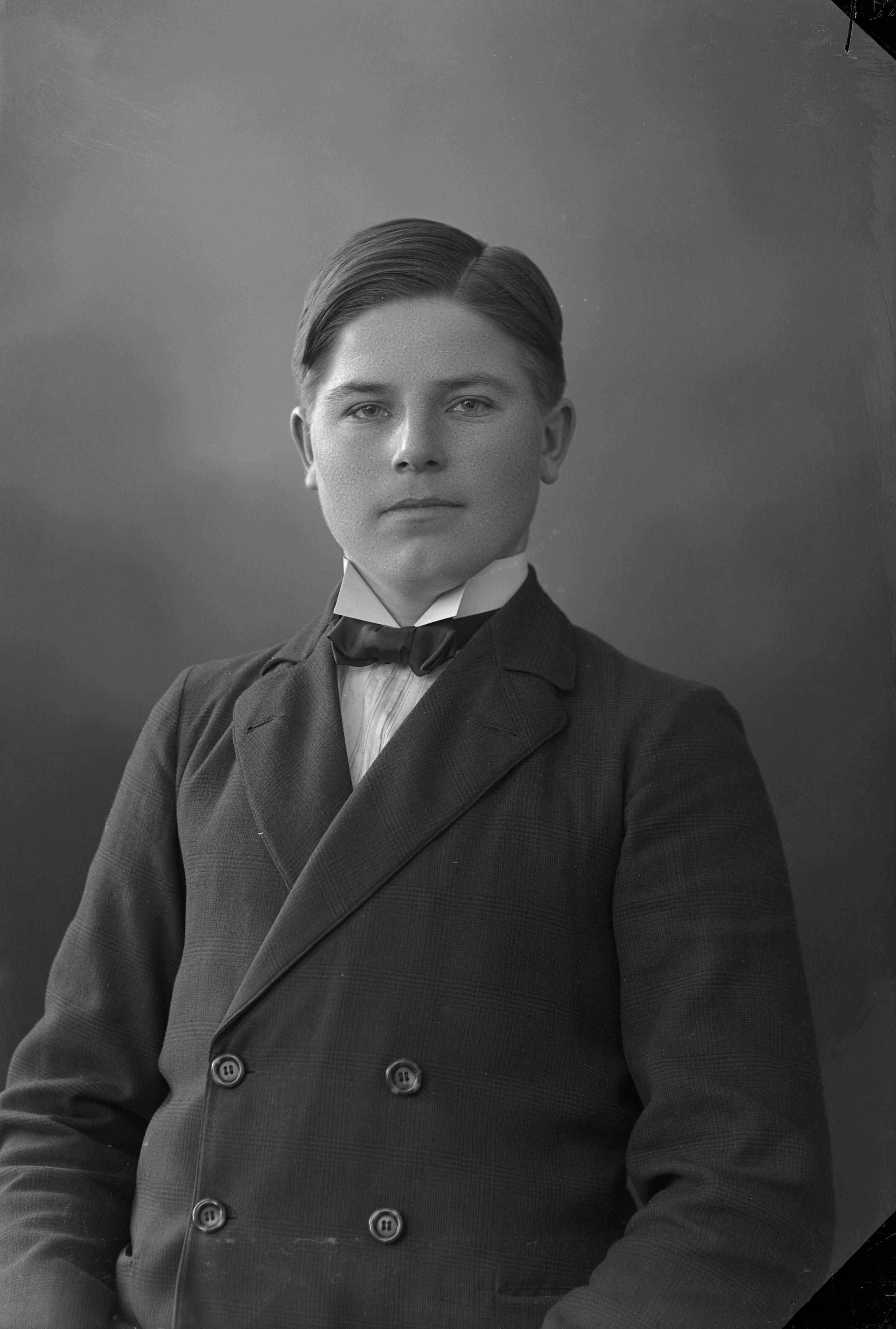 Beskrivning: Porträtt i halvfigur av August Andersson.