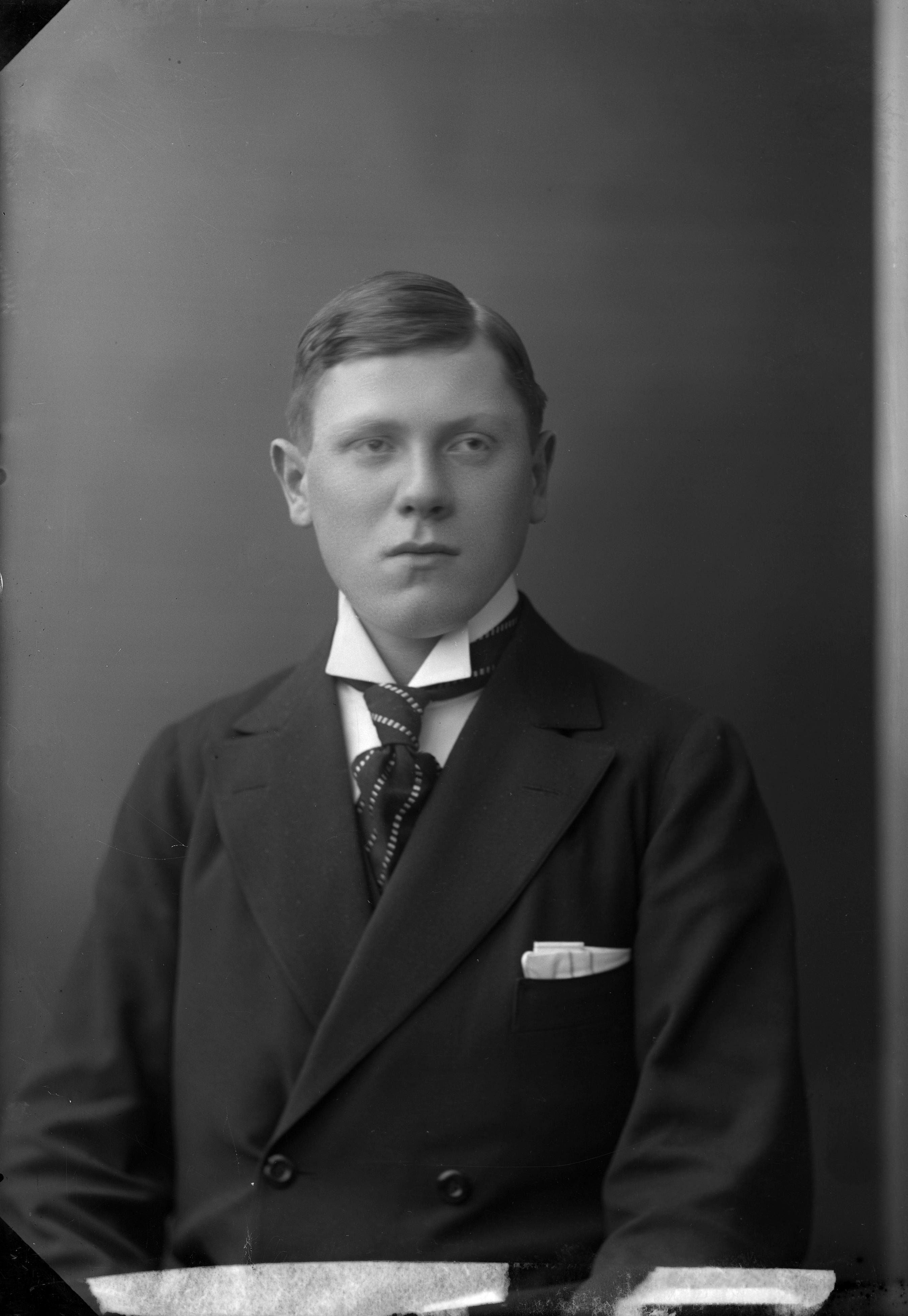 Beskrivning: Porträtt i halvfigur av Alfred Lundberg.
