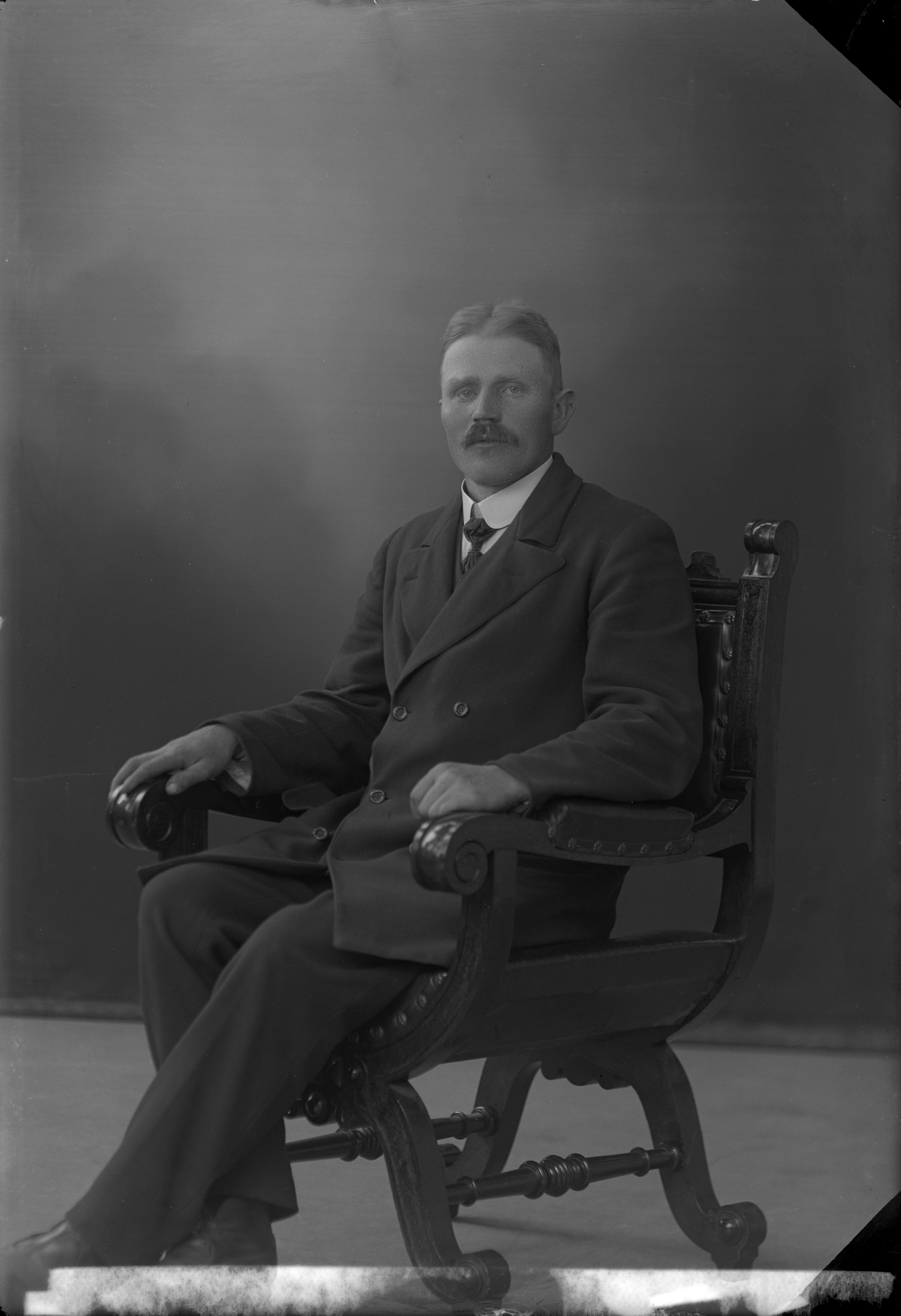 Porträtt i helfigur av Hjalmar Thörnqvist, sittande i stol.