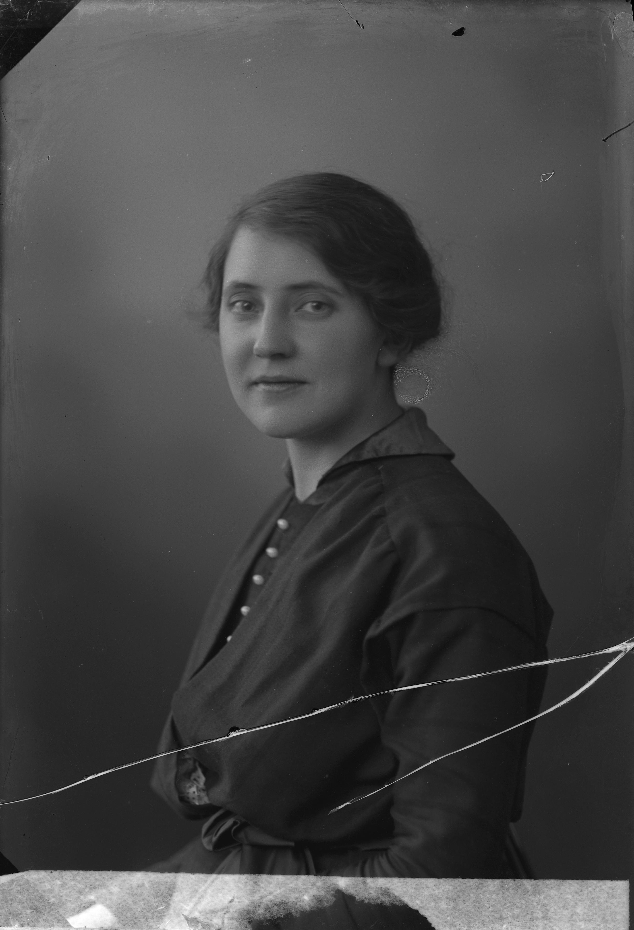 Beskrivning: Porträtt i halvfigur av Anna Blomberg.