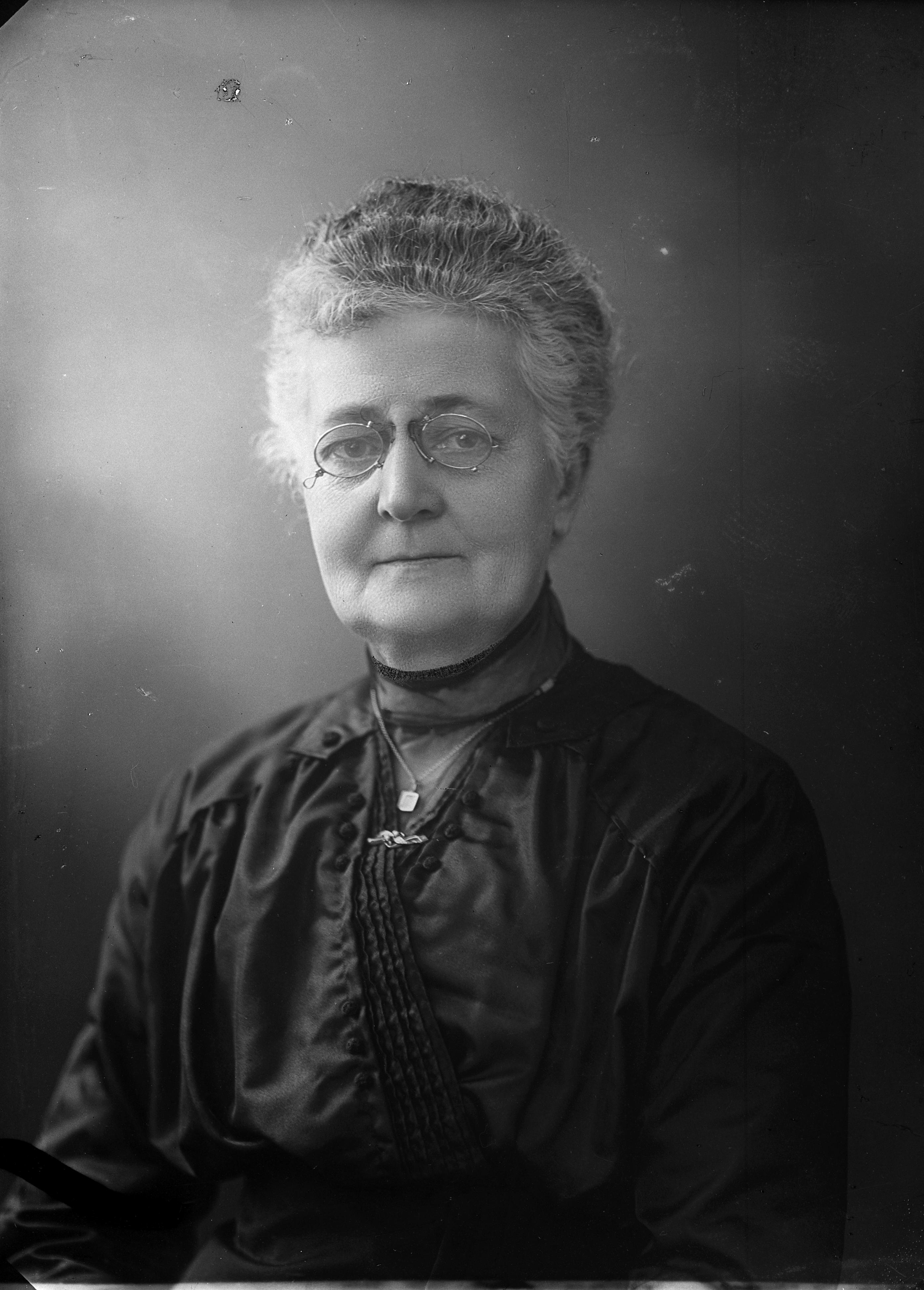 Beskrivning: Porträtt i halvfigur av Emelie Claesson.