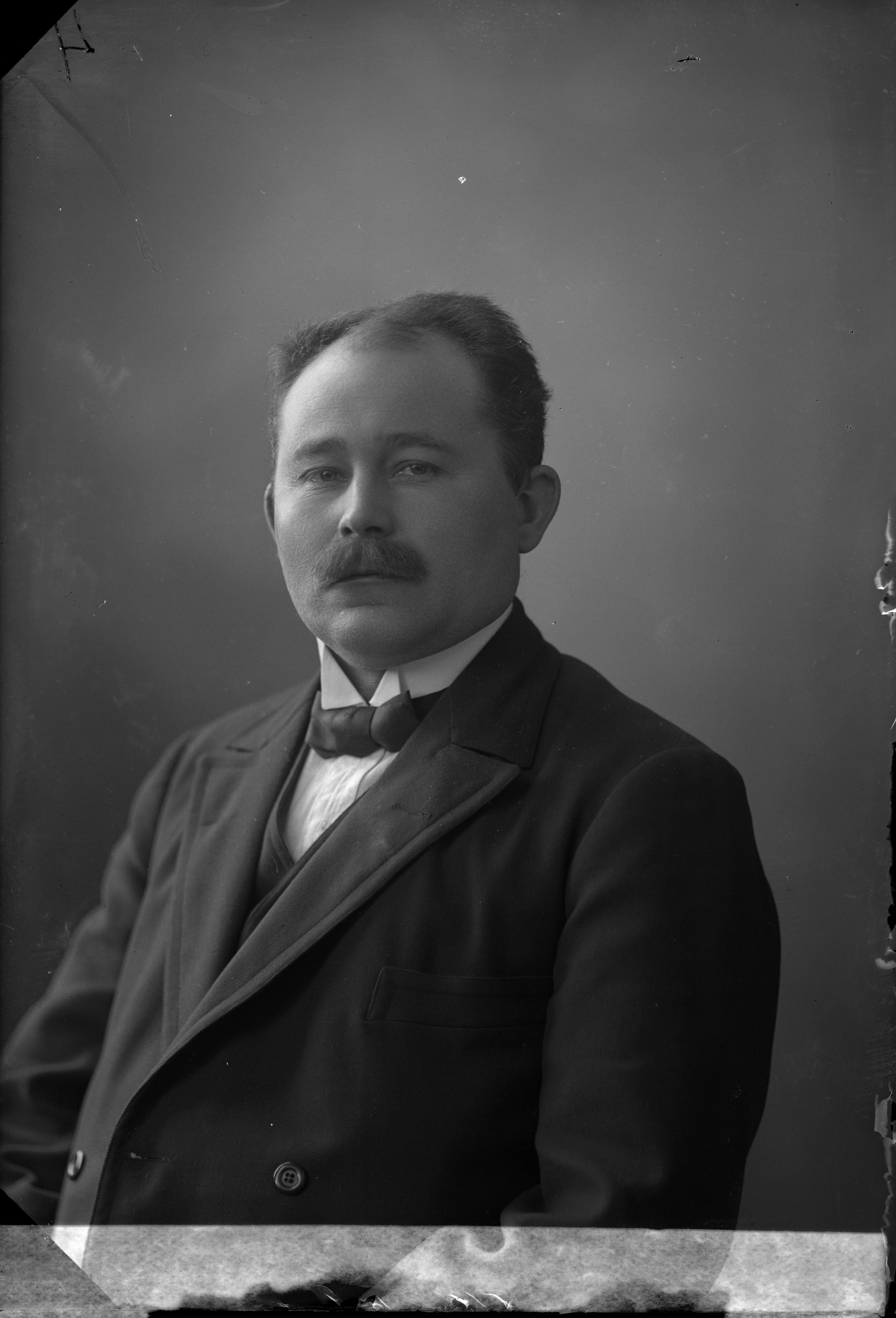 Beskrivning: Porträtt i halvfigur av herr Samuelsson.