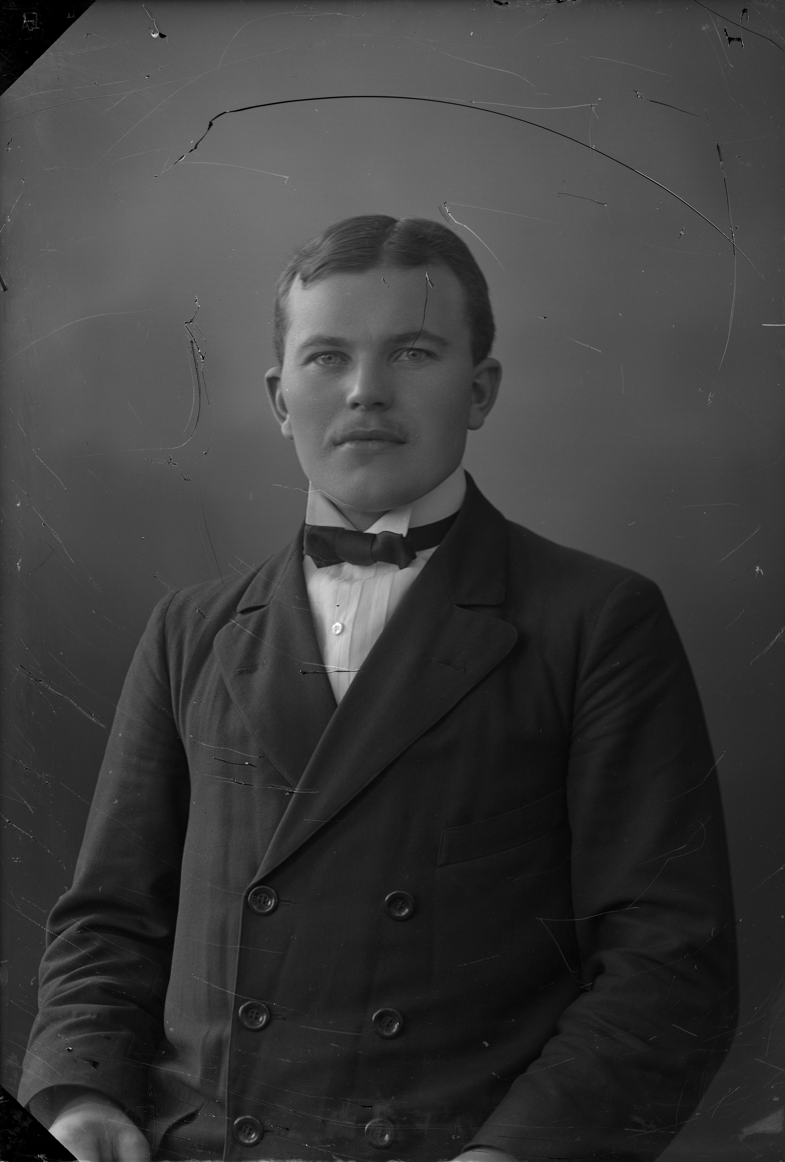 Beskrivning: Porträtt i halvfigur av Emil Jeppson.