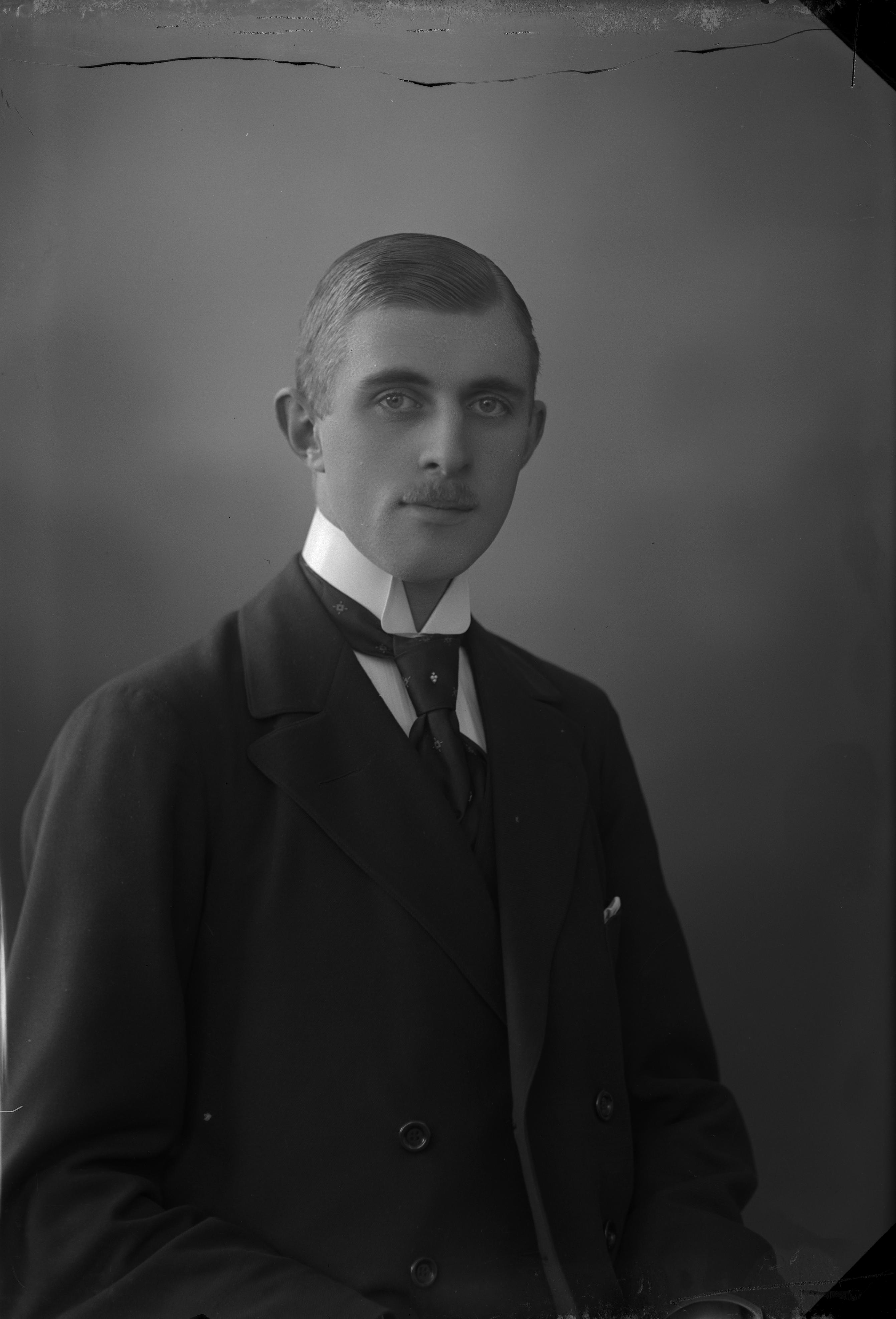 Beskrivning: Porträtt i halvfigur av Ernst Jönsson.