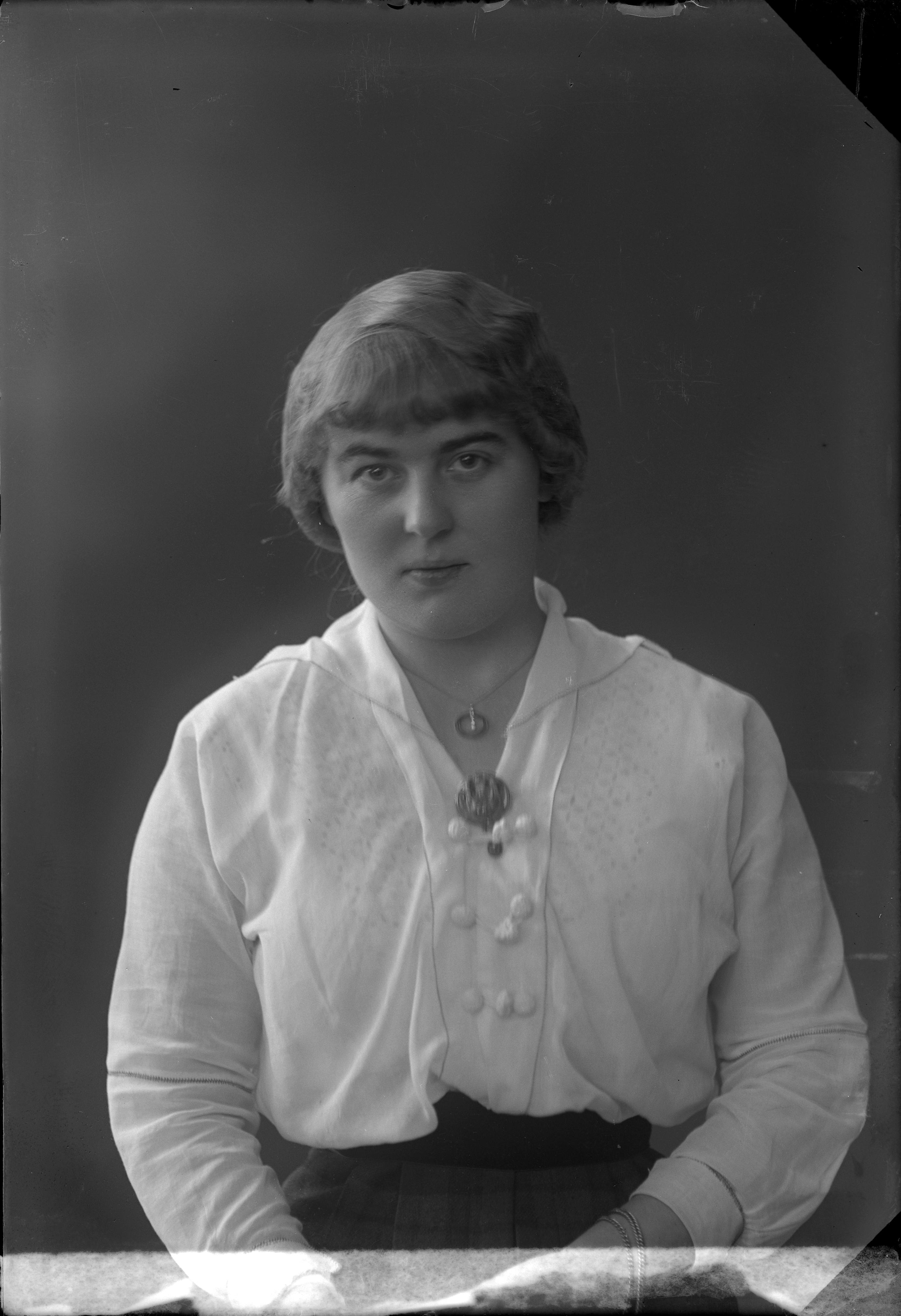 Beskrivning: Porträtt i halvfigur av Ragnhild Pettersson.