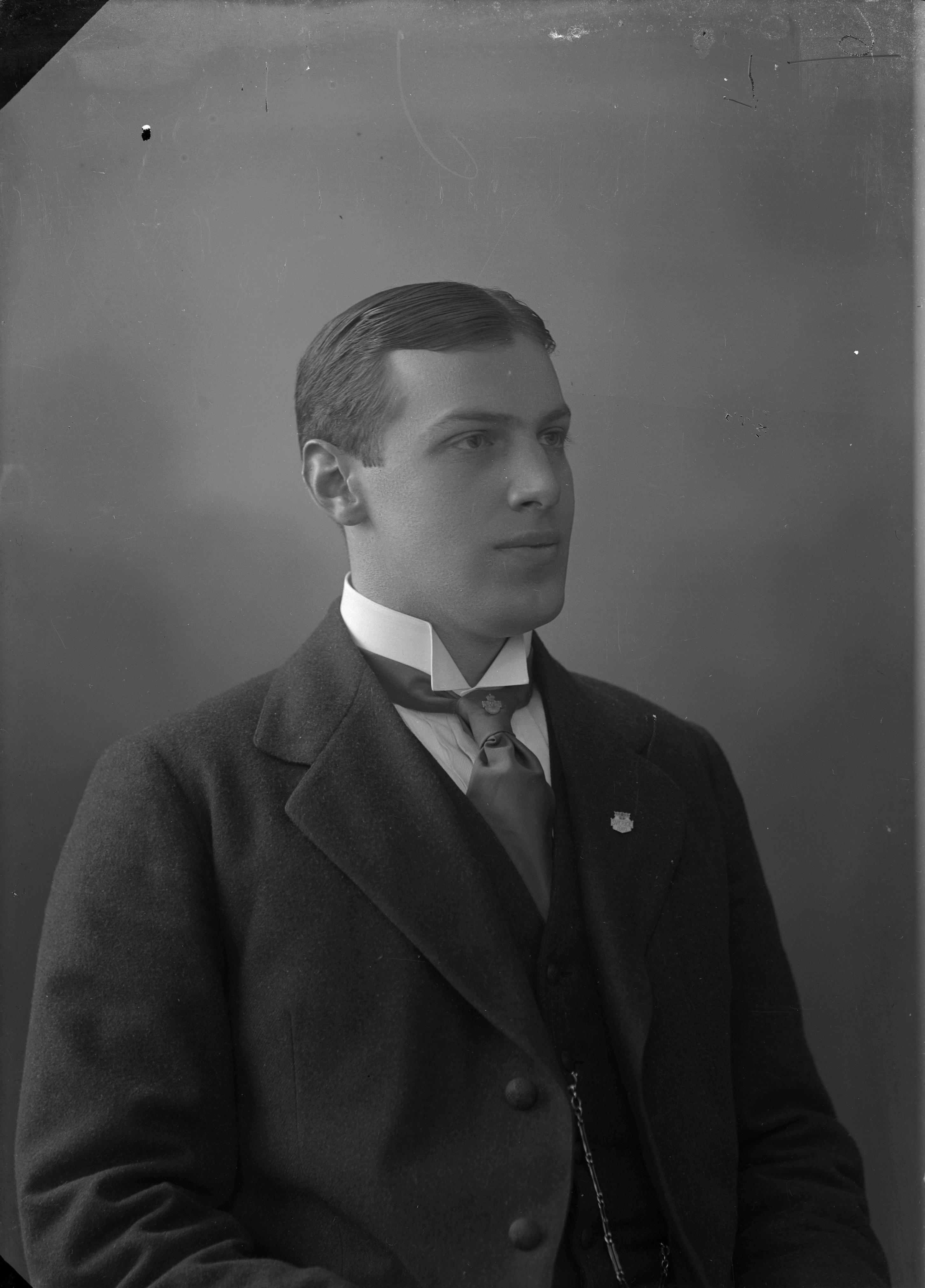 Beskrivning: Porträtt i halvfigur av Arvid Holmberg.