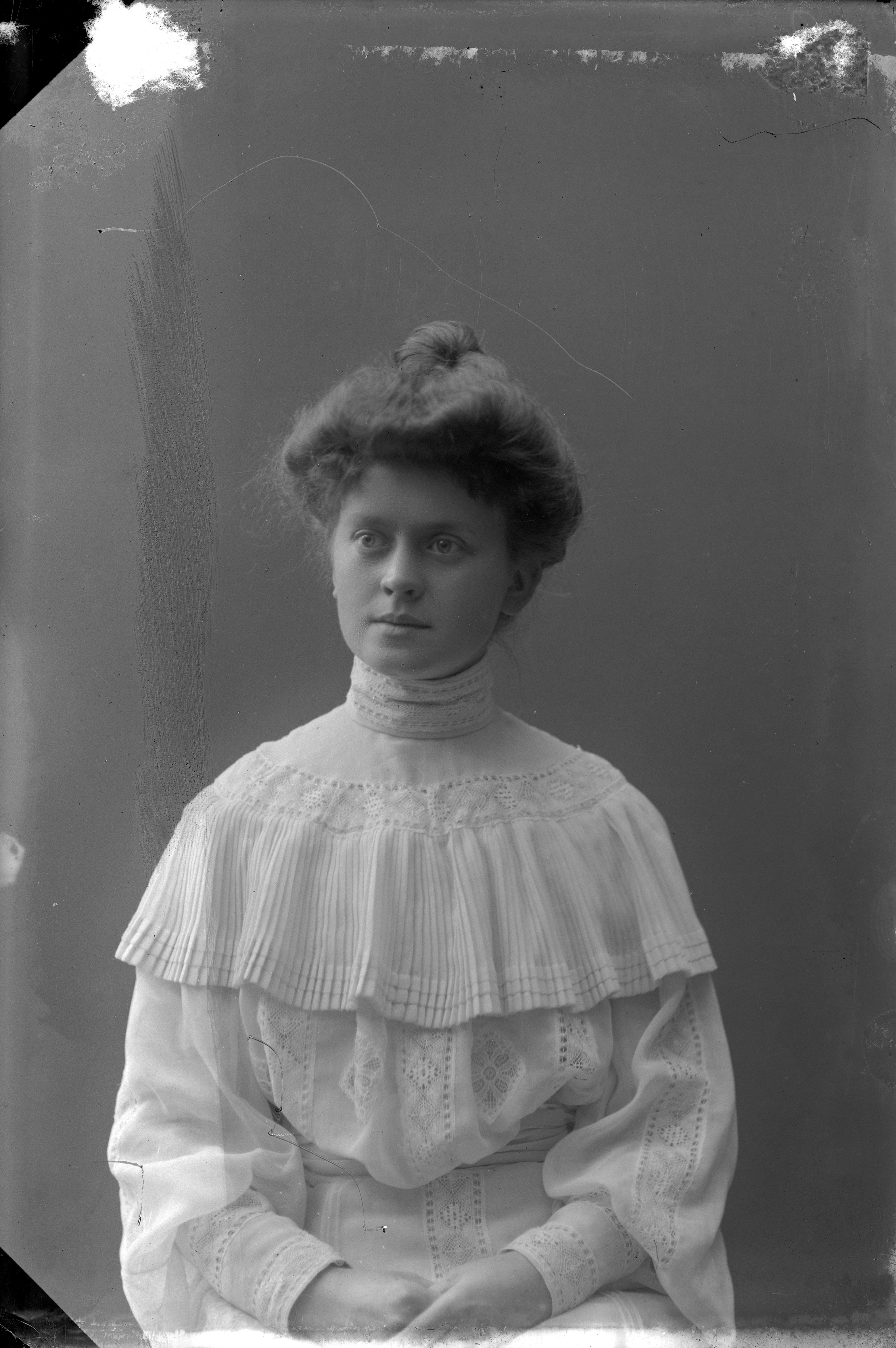 Beskrivning: Porträtt i halvfigur av Anna Larsson.