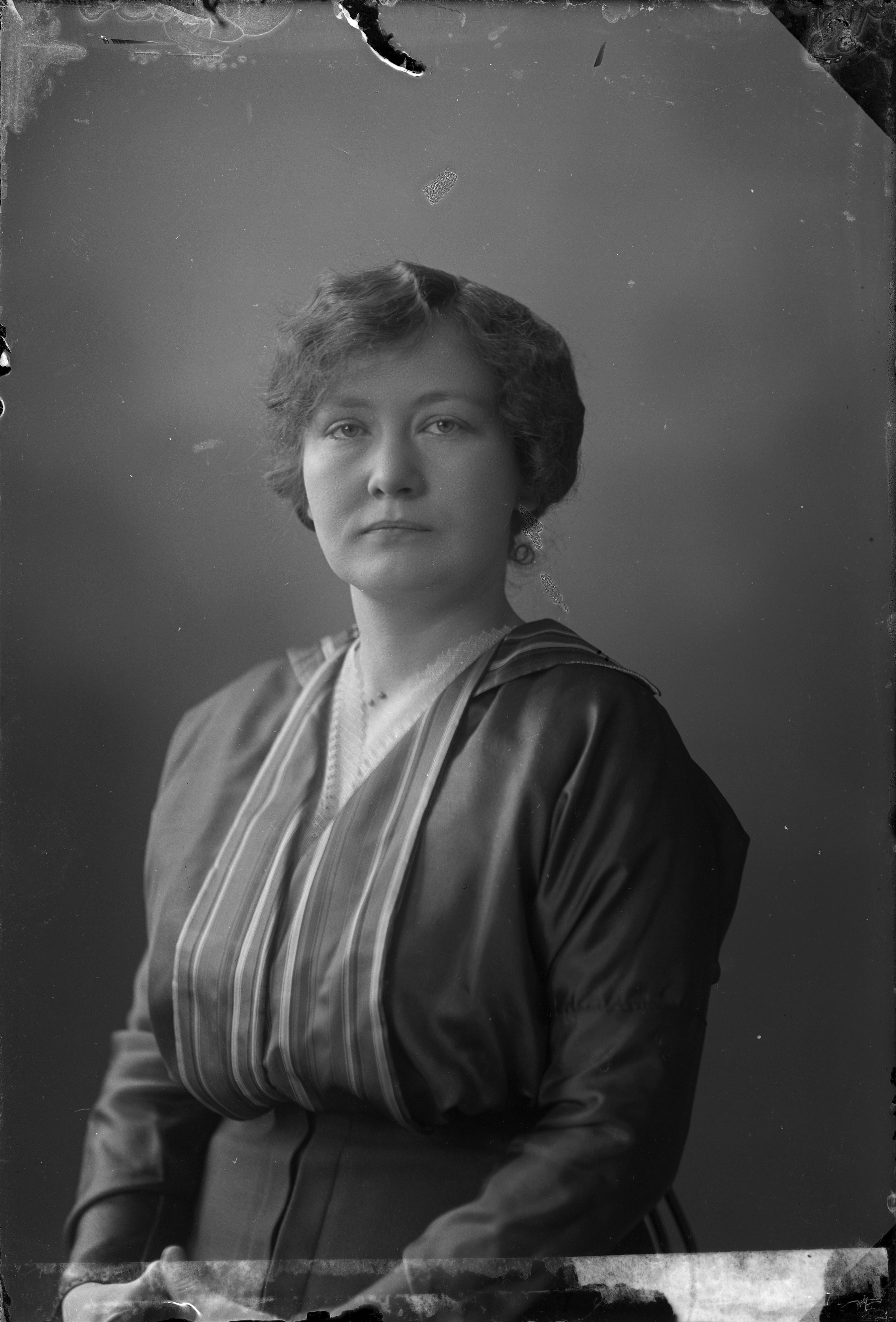 Beskrivning: Porträtt i halvfigur av Gunvor Svensson.