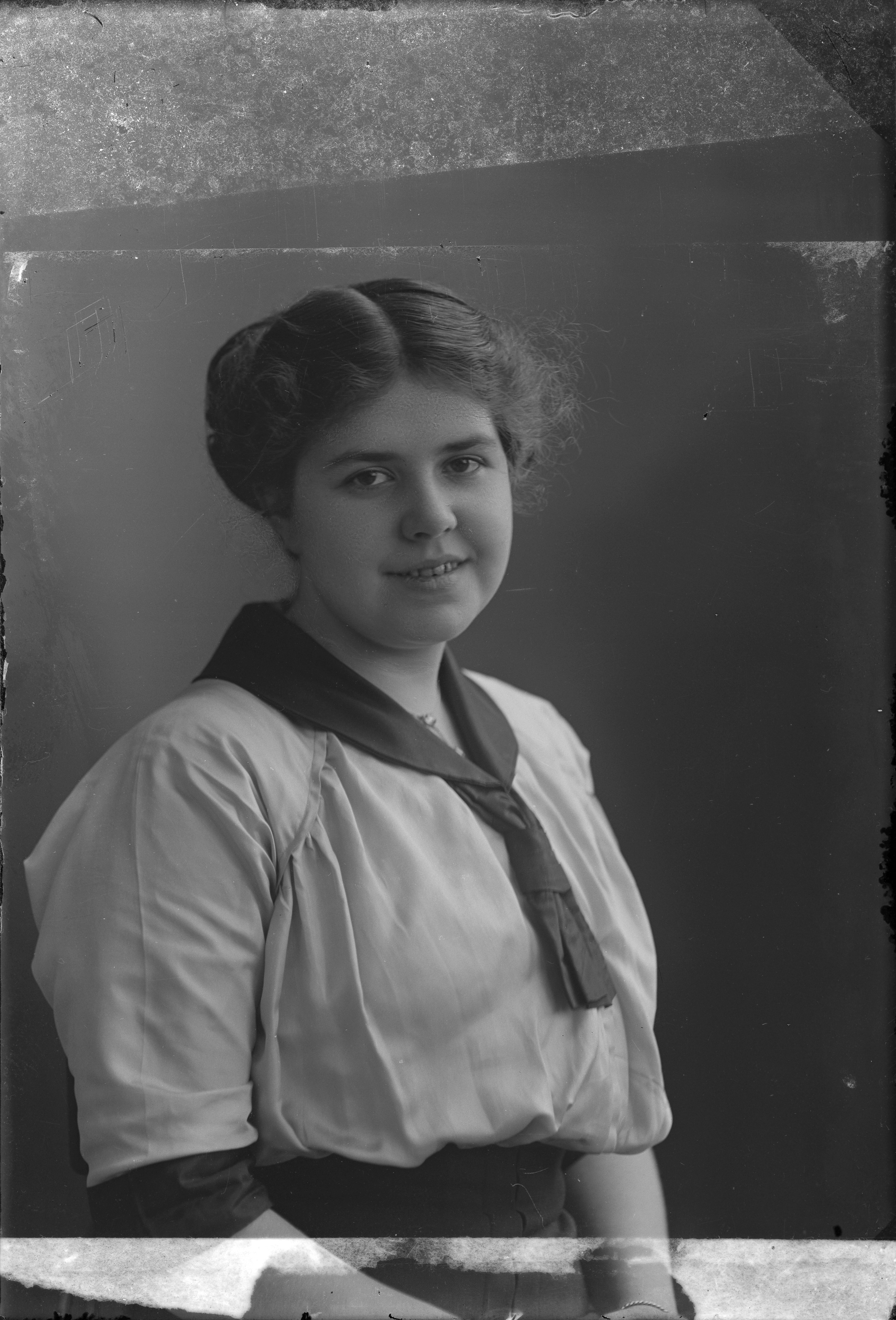 Beskrivning: Porträtt i halvfigur av Ebba Holst.