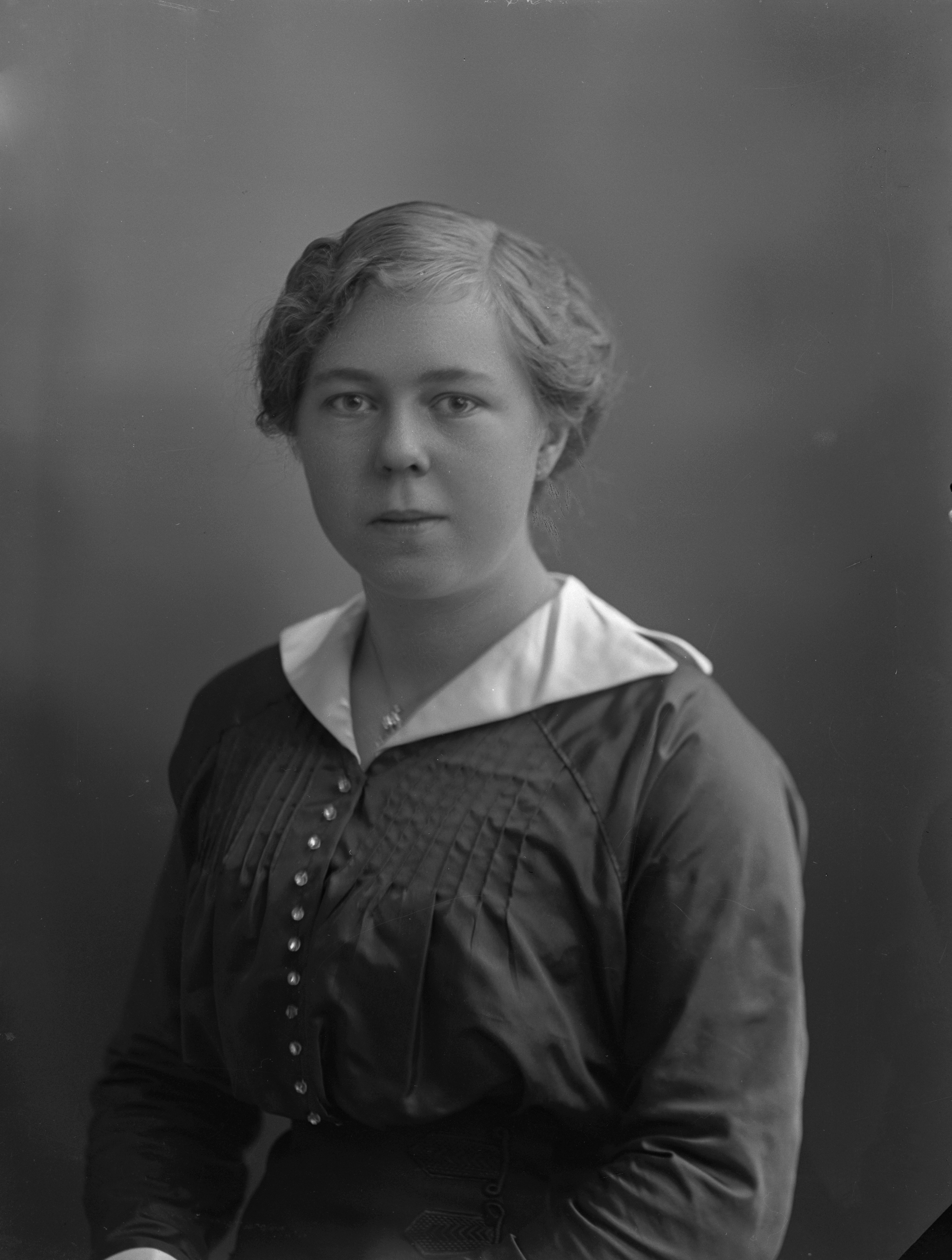 Beskrivning: Porträtt i halvfigur av Clara Nilsson.