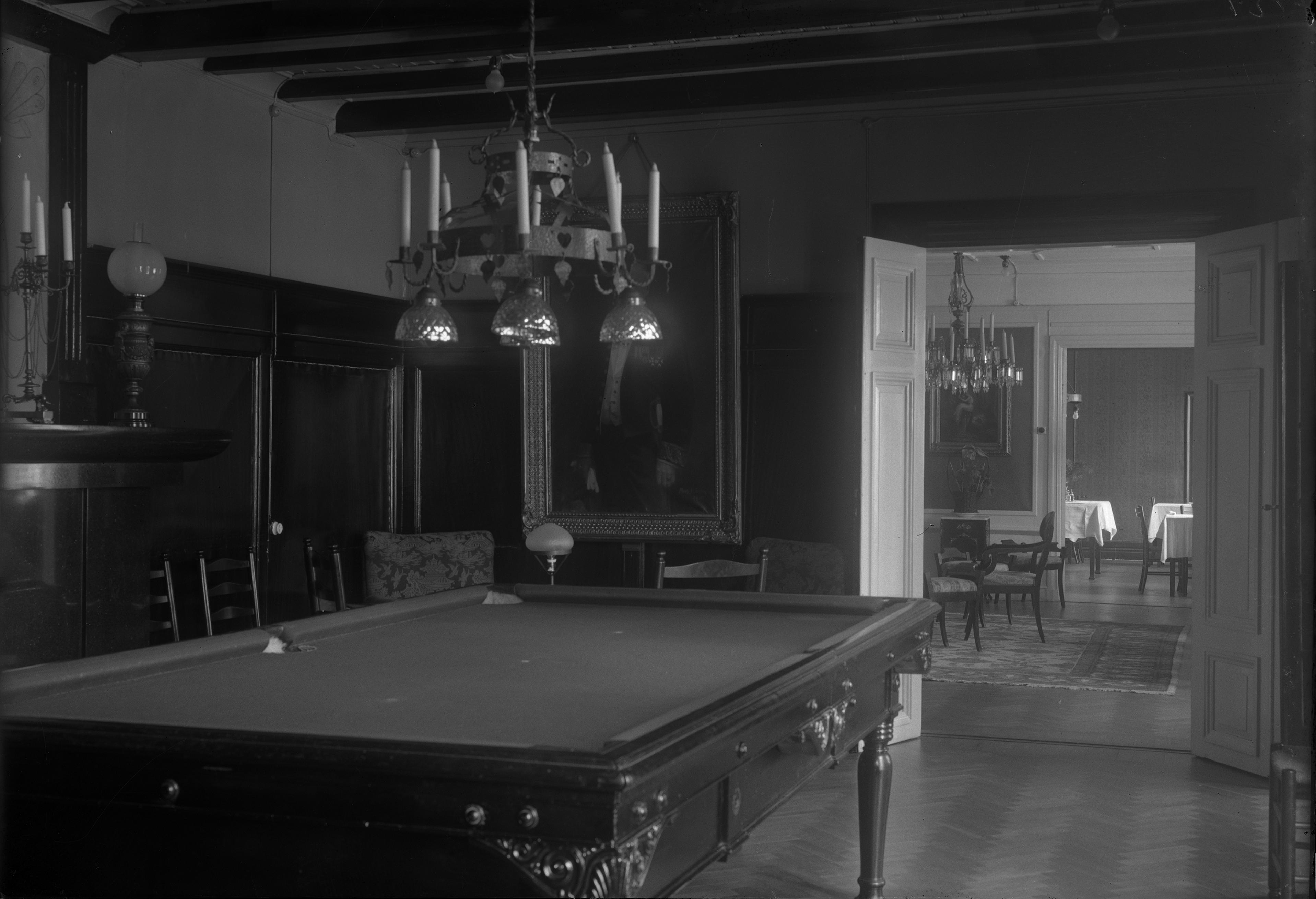 Beskrivning: Interiör med b.l.a. biljardbord.