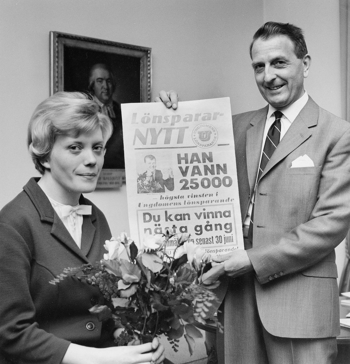 Fröken Jonasson tillsammans med sparkonsulent Karl Erik Strangler,
