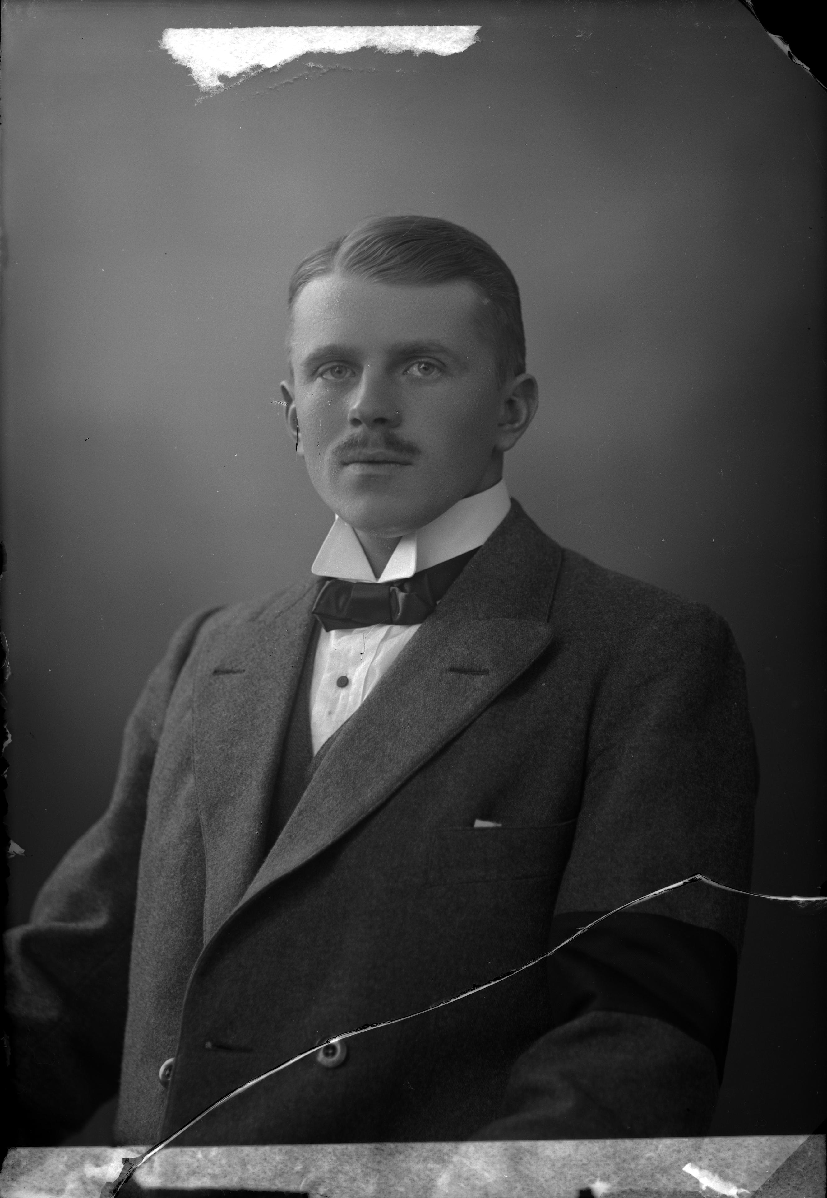 Beskrivning: Porträtt i halvfigur av ingenjör A. Nilsson.