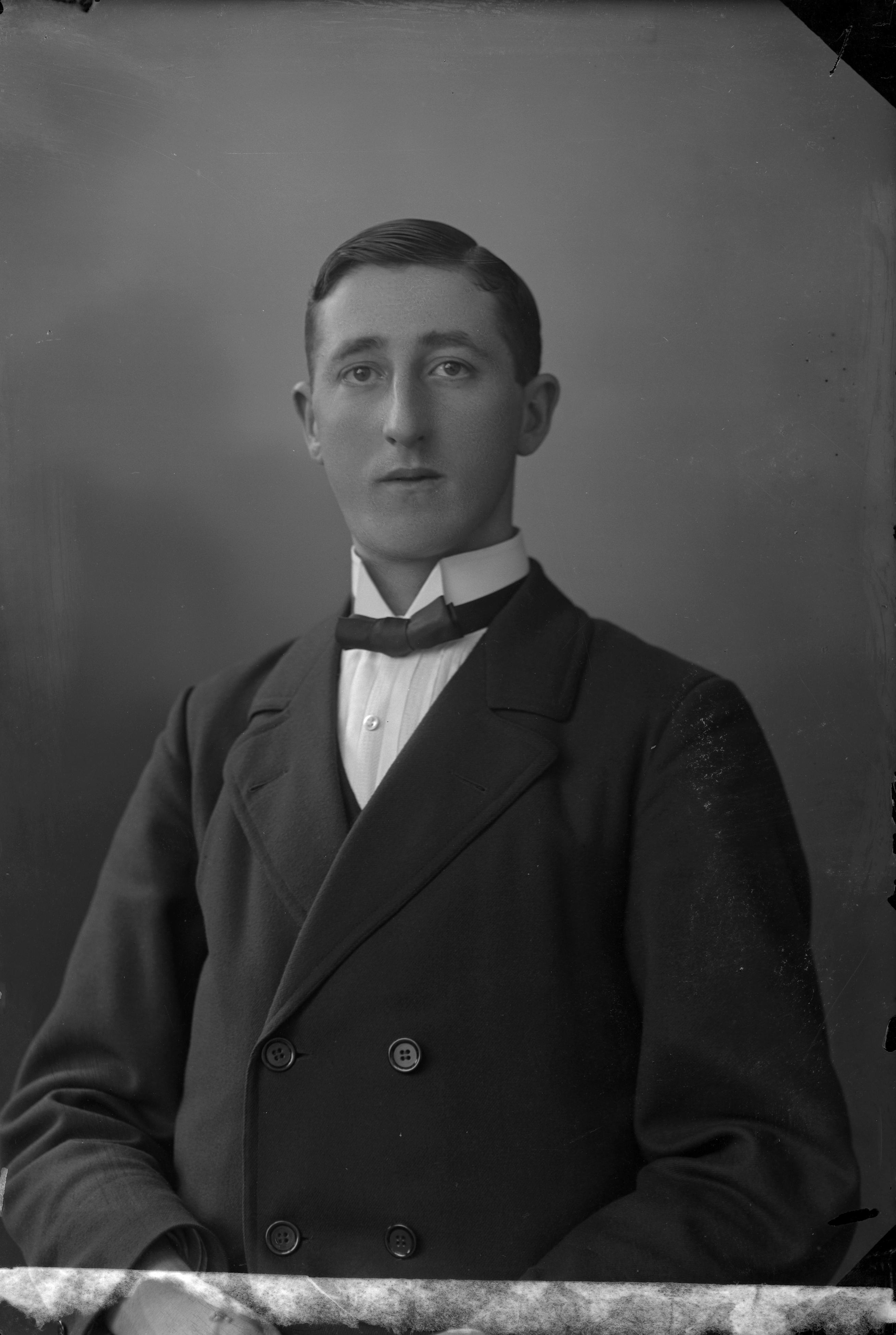 Beskrivning: Porträtt i halvfigur av Bruno Johansson.